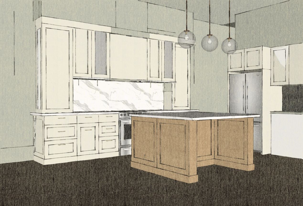 warm under counter lighting wood floors glass cabinets beside range