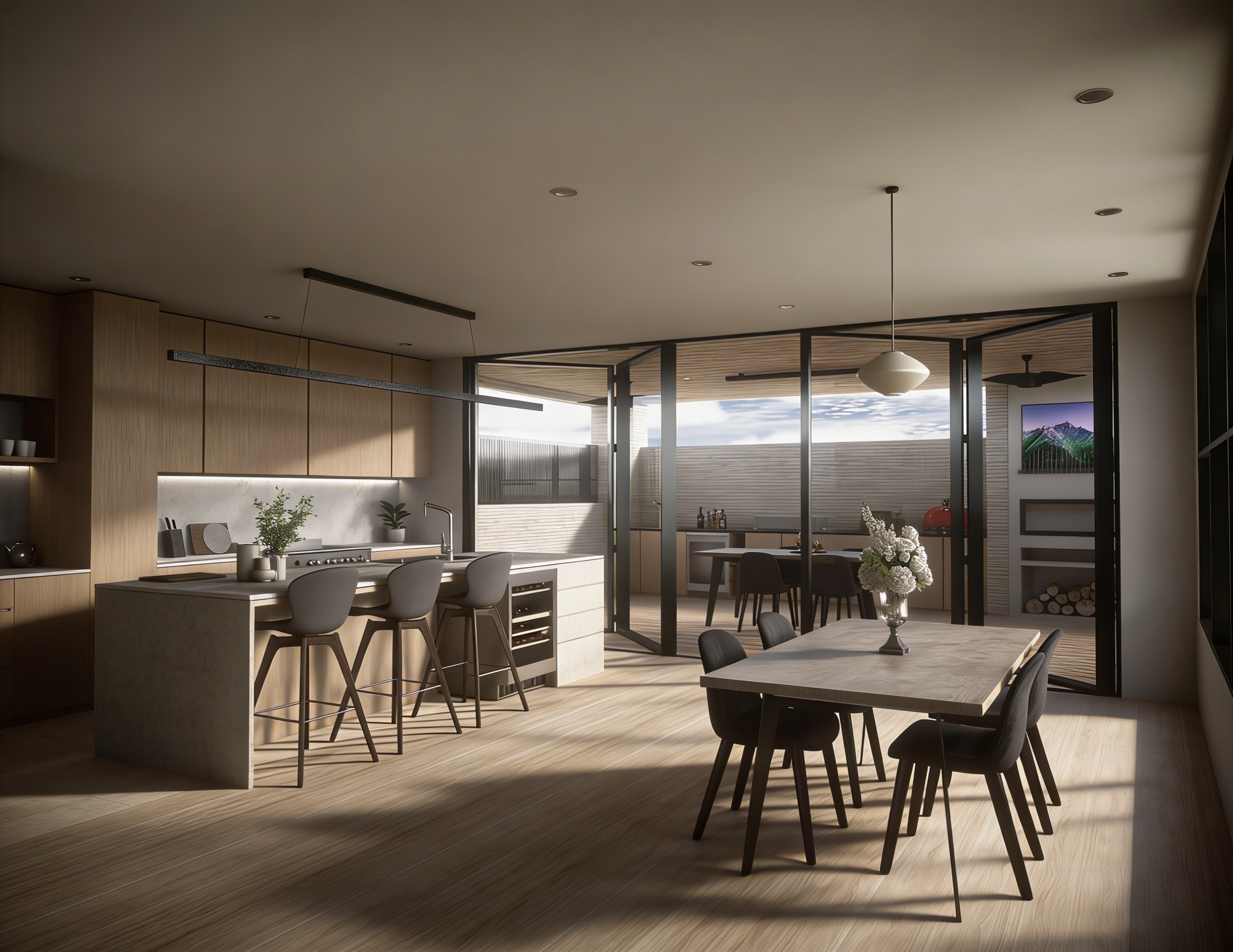 convert this floor plan into a realistic isometric 3d view of a full house show the space from an elevated angle with furniture walls and details visible stay with the exactly layout of the plan use a white and beige color pallette with an arch that goes into the sitting area the fireplace on the right in the sitting room is a long modern linear fireplace the ceilings are 10 tall and the windows are 8 tall use the same furniture as shows on the plan do not change the orientation of the floorplan