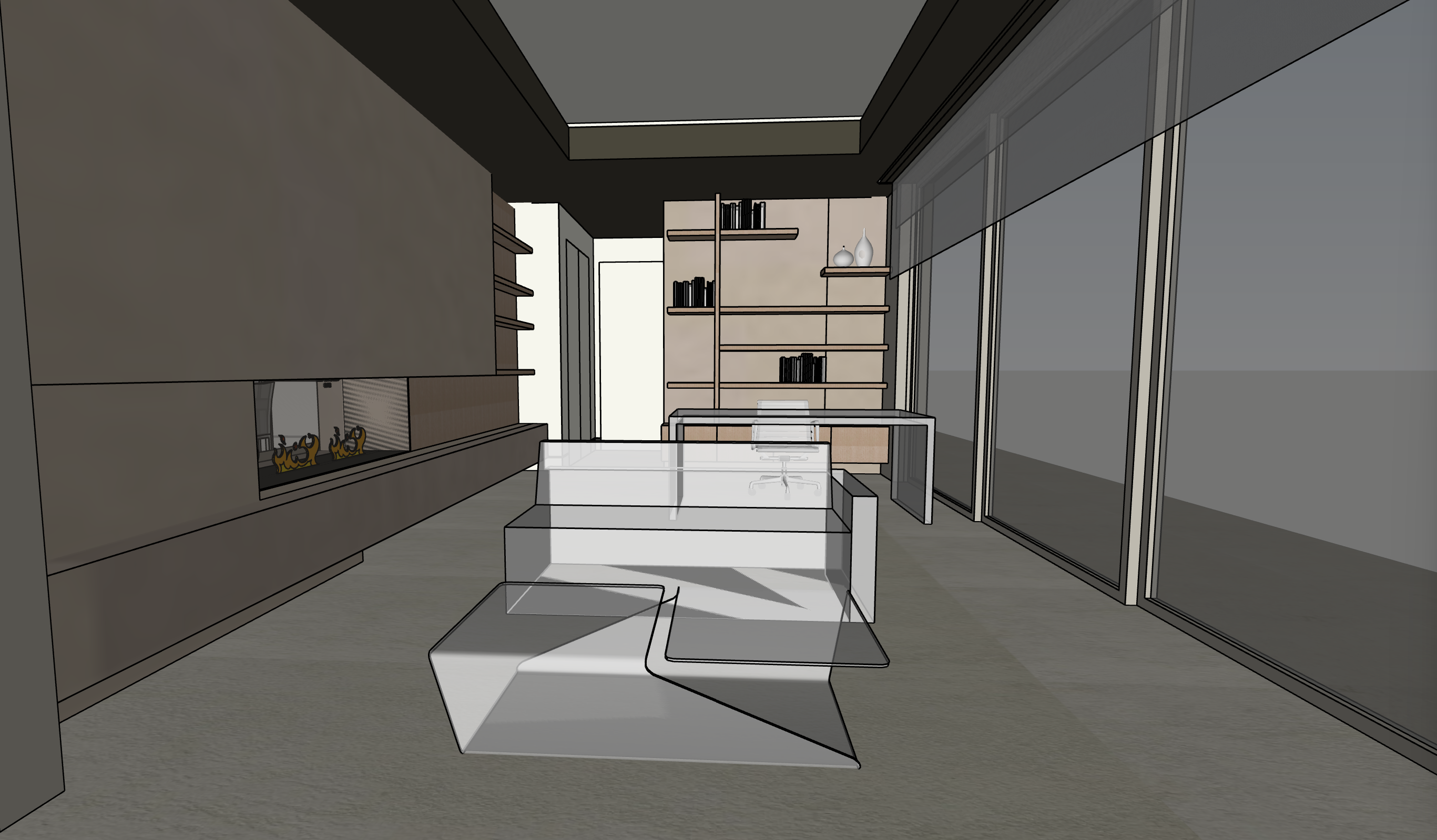add lighting under shelves make fire in fireplace more realistic make sofa in linen make cabinets under fireplace same texture as fireplace