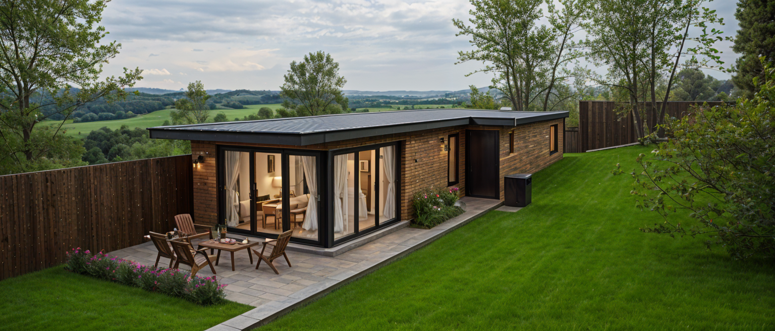 black shingles dark green siding black windows and trim wood columns lanscaping and sunny sky background