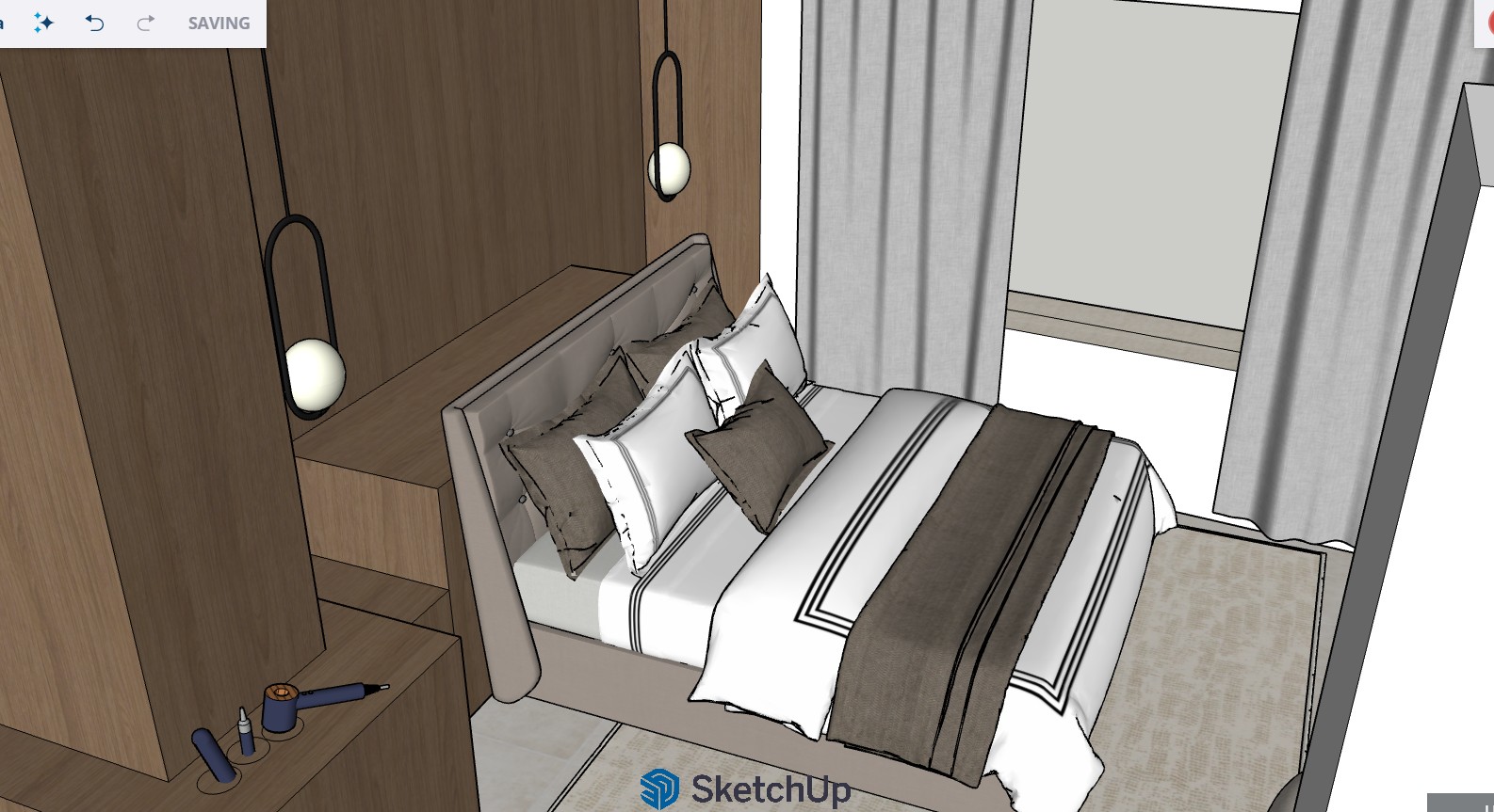 ultra realistic interior render in japandi minimal style based strictly on the provided sketchup geometry do not add remove or modify architectural elements preserve the exact layout openings and structure lighting evening night time atmosphere no daylight scene is illuminated only by existing artificial light sources within the model soft warm ambient lighting 2700k 3000k including indirect lighting concealed led strips table lamps or ceiling lights if already present do not add new light fixtures light quality low intensity diffused glow soft shadows gentle falloff cozy and intimate atmosphere subtle contrast with slightly darker corners realistic light bounce materials warm neutral palette beige tones matte finishes and natural fabrics furniture low profile japandi style simple forms minimal and refined styling add a small number of carefully curated decorative elements keep styling minimal and intentional not cluttered materials for decor ceramic wood linen stone in neutral tones only placement balanced composition with negative space preserved do not overcrowd surfaces camera eye level perspective 35mm lens photorealistic textures global illumination ray tracing high dynamic range soft depth of field mood calm cozy intimate refined minimalism quiet luxury evening relaxation atmosphere no additional windows no new openings no added light fixtures no clutter no bold colors