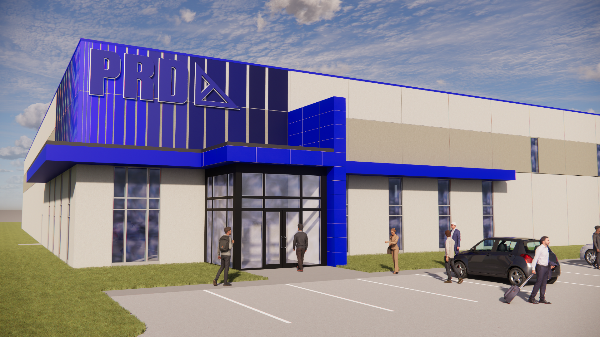 concrete parking lot add some trees in the far background sign says prd and the panels are gradient from light to dark left to right