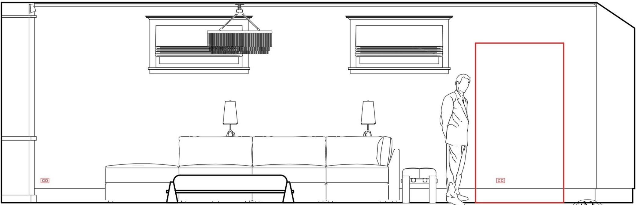 render the sofa with a caramel color velvet add graphic pillows in black and white to the sofa add light gray paint color to the walls add a medium scale brown graphic print to the roman shade window treatments the lamps are black bases with gold metal shades the chandelier is gold there is a large basketball pop of shot to the right of the sofa the ottoman is walnut the flooring is white carpeting the wall to the left of the sofa is plain drywall