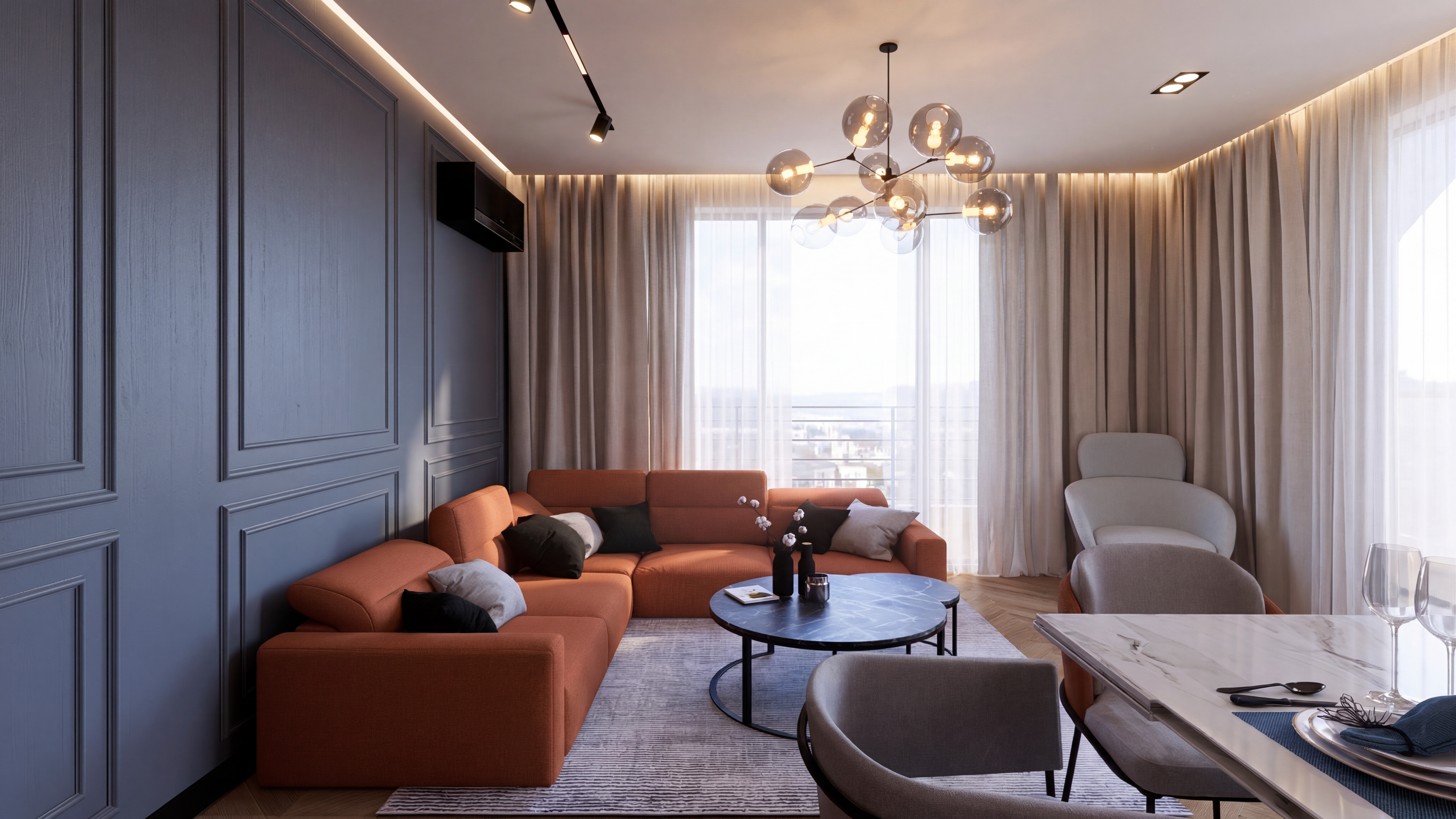 an exectutive office for an eclectic it security professional an l shaped desk is preferred with a chair that has the back against the blue wall and then some sort of walk in guest chair set up