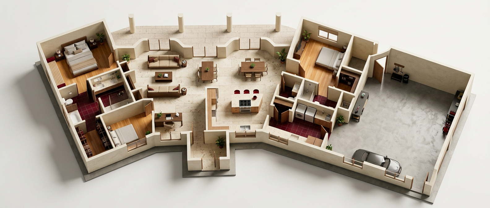 retain everything about the image just update the fa ade and roof extend the wave pattern of the fa ade to the roof in a way that it appears like it wraps the roof and the fa ade seamlessly into one