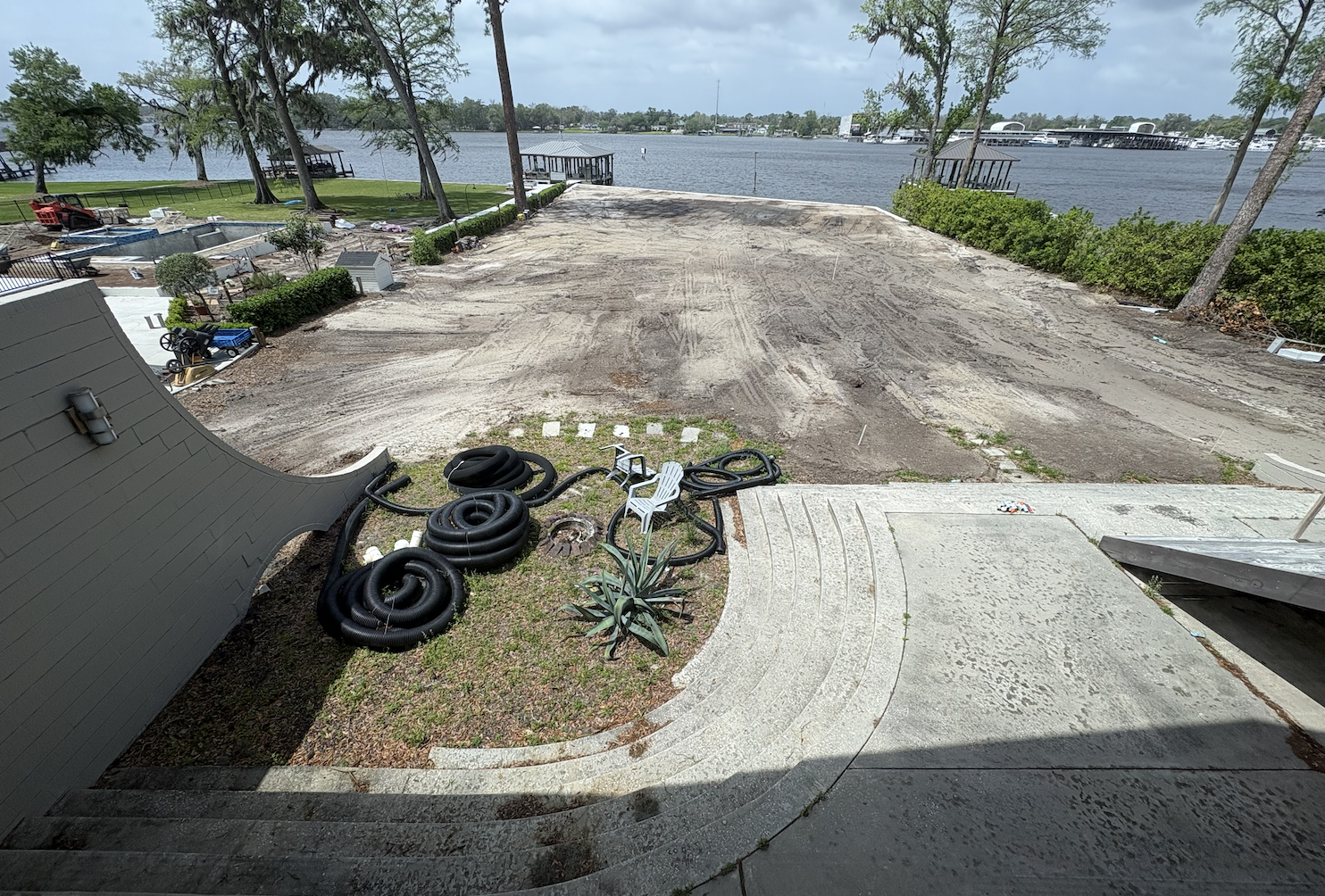 can you remove the hoses and chairs and install a pool within the concrete patio area
