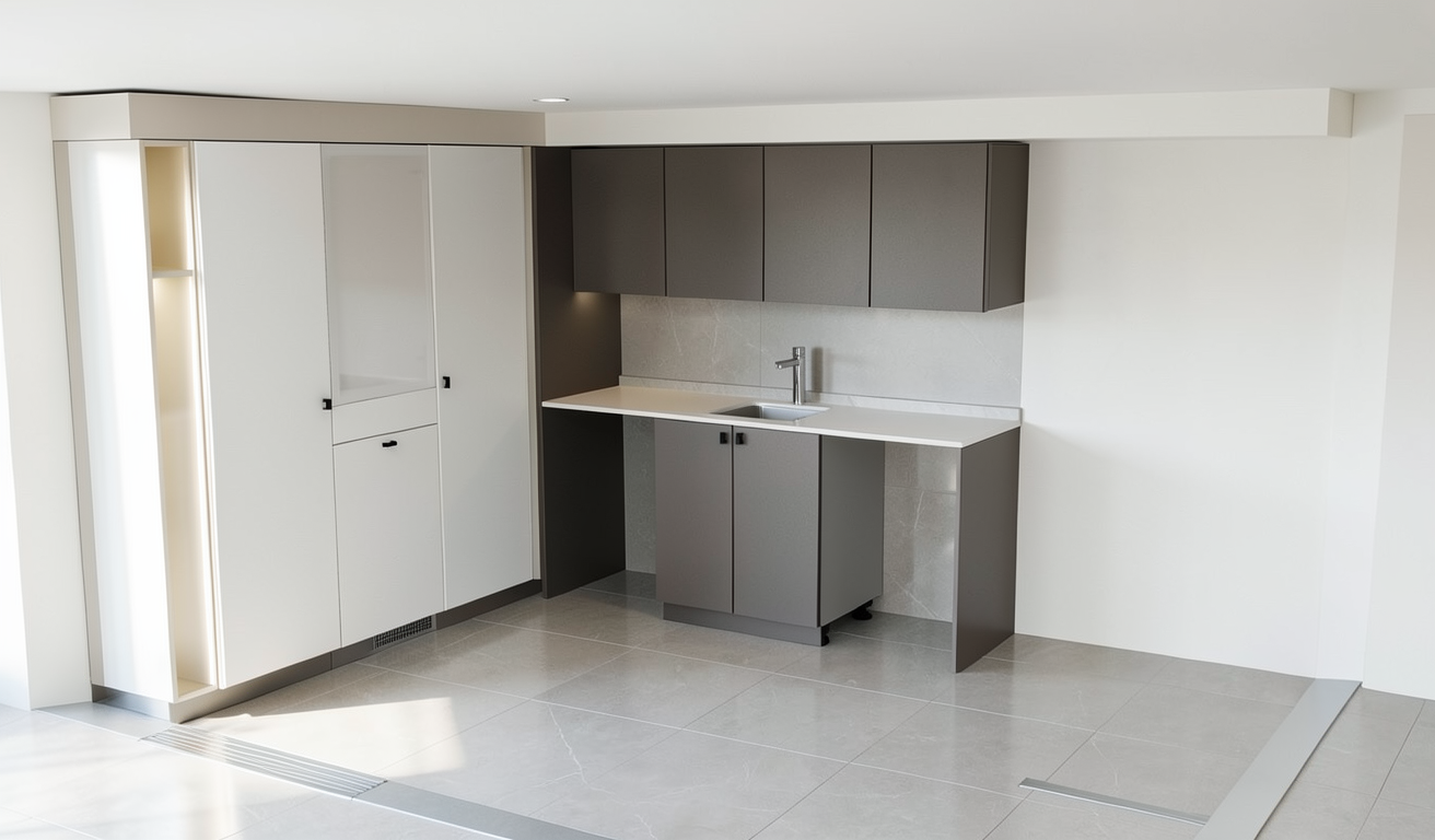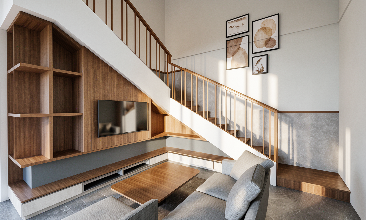 ubah panel abu abu di bawah tv jadi terbuat dari cermin