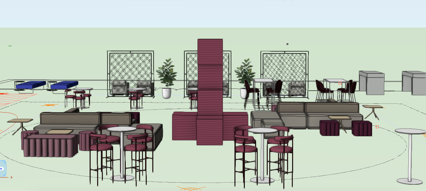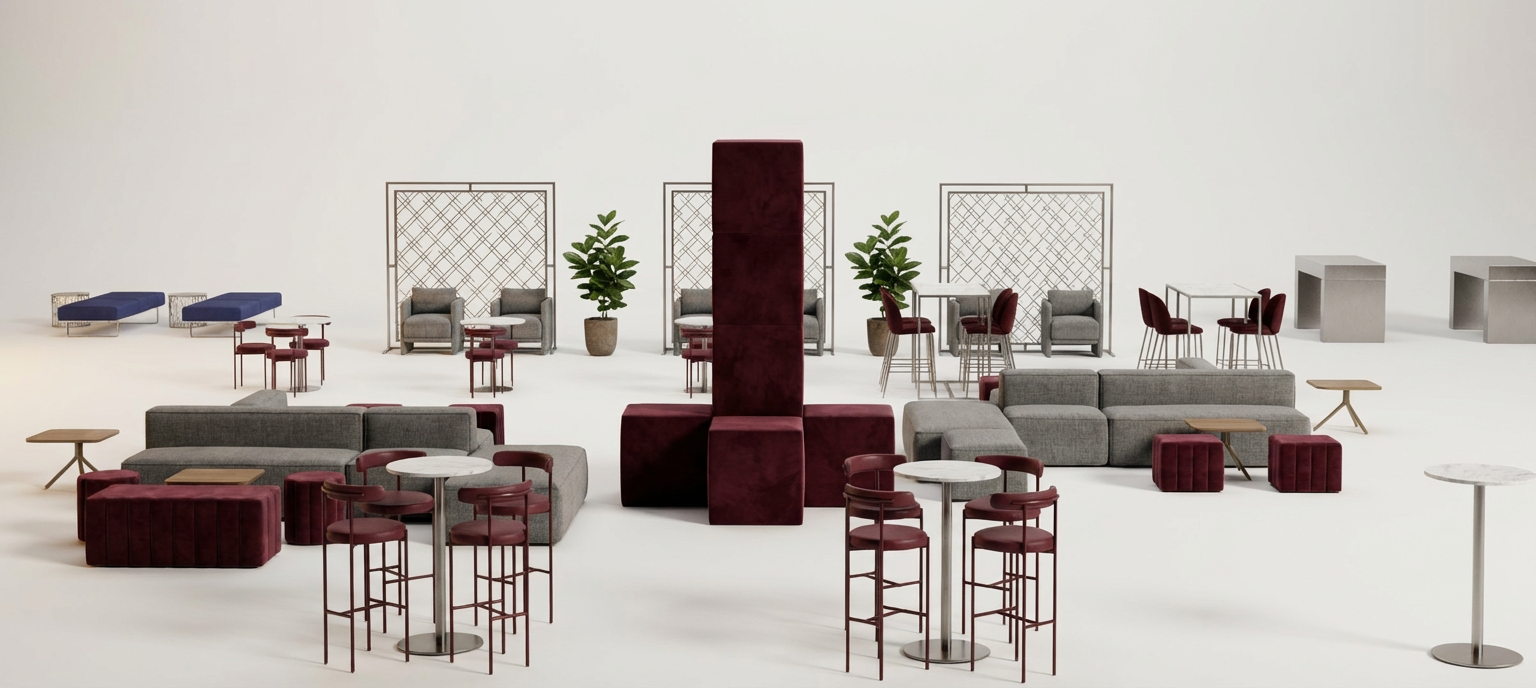 no background cubes in the centre with gradient of pink light blue and red burgundy no furniture behind mesh squares at the end
