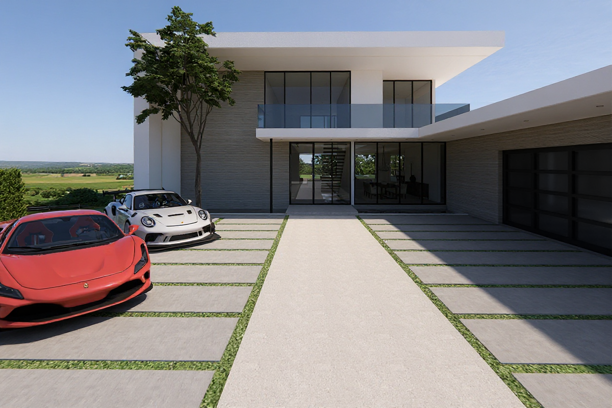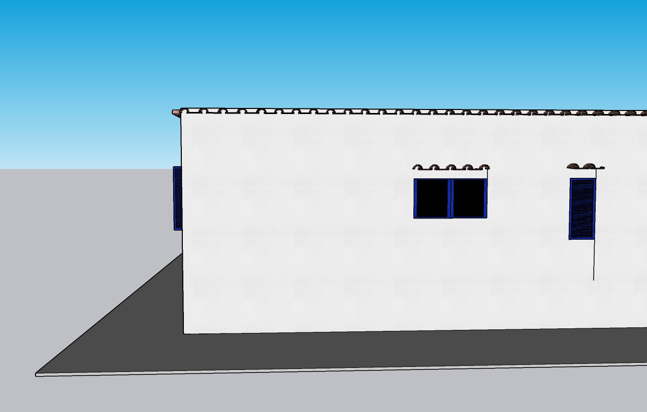 luce nelle finestre di colore blu tettoia con pilastri in pietra e struttura in legno con copertura con tegole muratura colore bianco nuovo