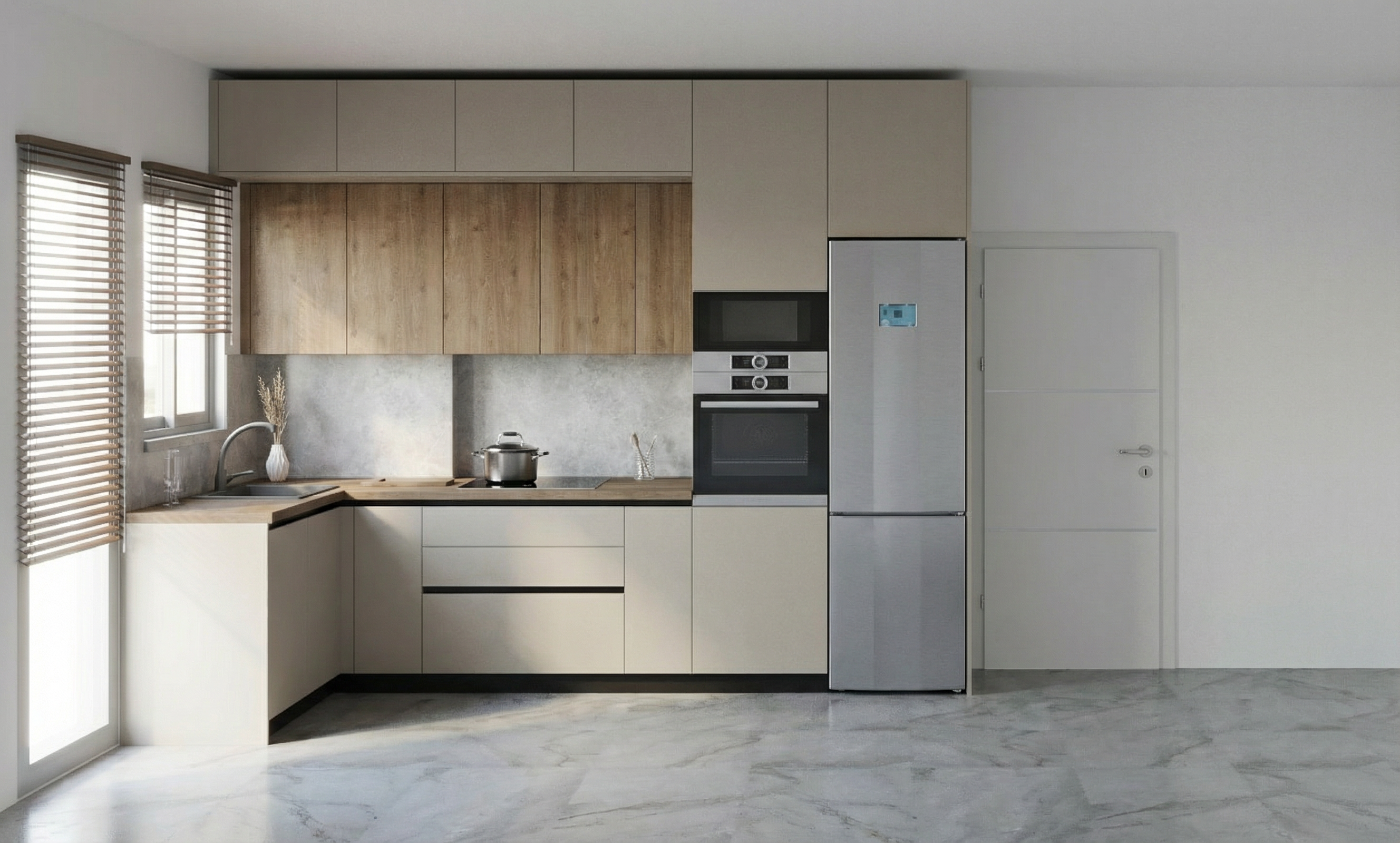 transform the provided image into a high end photorealistic render with warm golden hour atmosphere