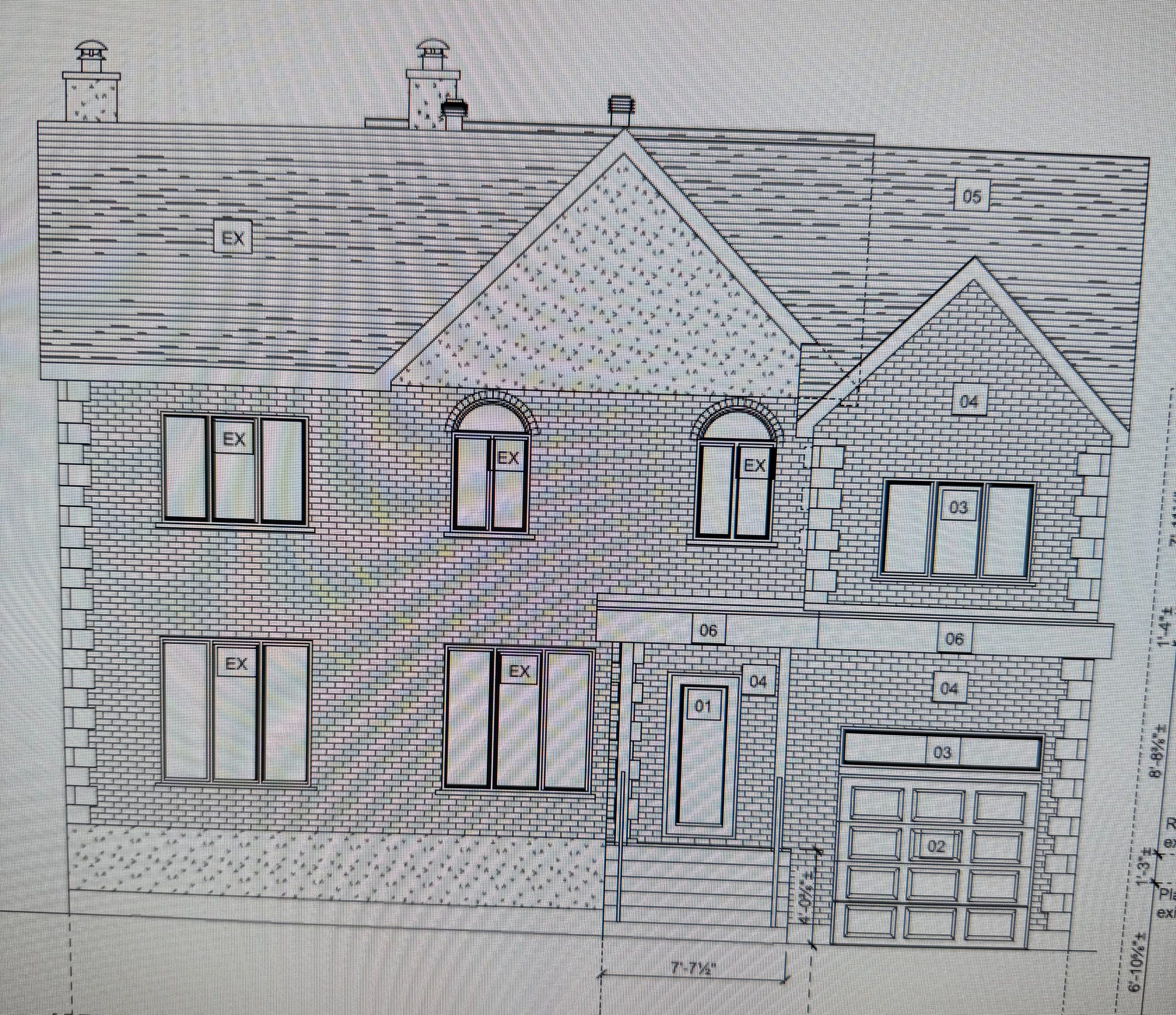 briques et crepis gris pale fenetres portes et porte de garage blanc bardeau gris fonc pas de fenetres en haut sur toiture