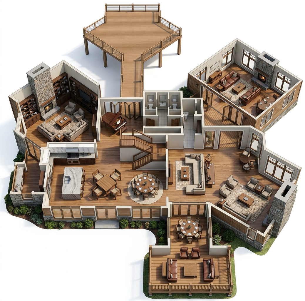 convert this floor plan into a realistic isometric 3d view of a living room show the space from an elevated angle with furniture walls and details visible use the same furniture as shows on the plan do not change the orientation of the floorplan