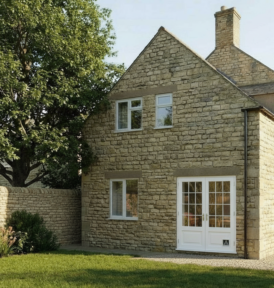 the garden wall is flush with the building because the building is on the boundary keep everything else the same