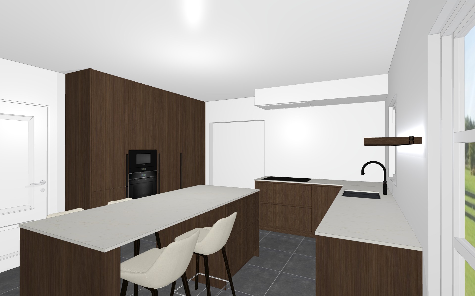 decorate this kitchen with a few elements keep the original colors and textures there is only 1 plank don t add more keep the tile floor time noon