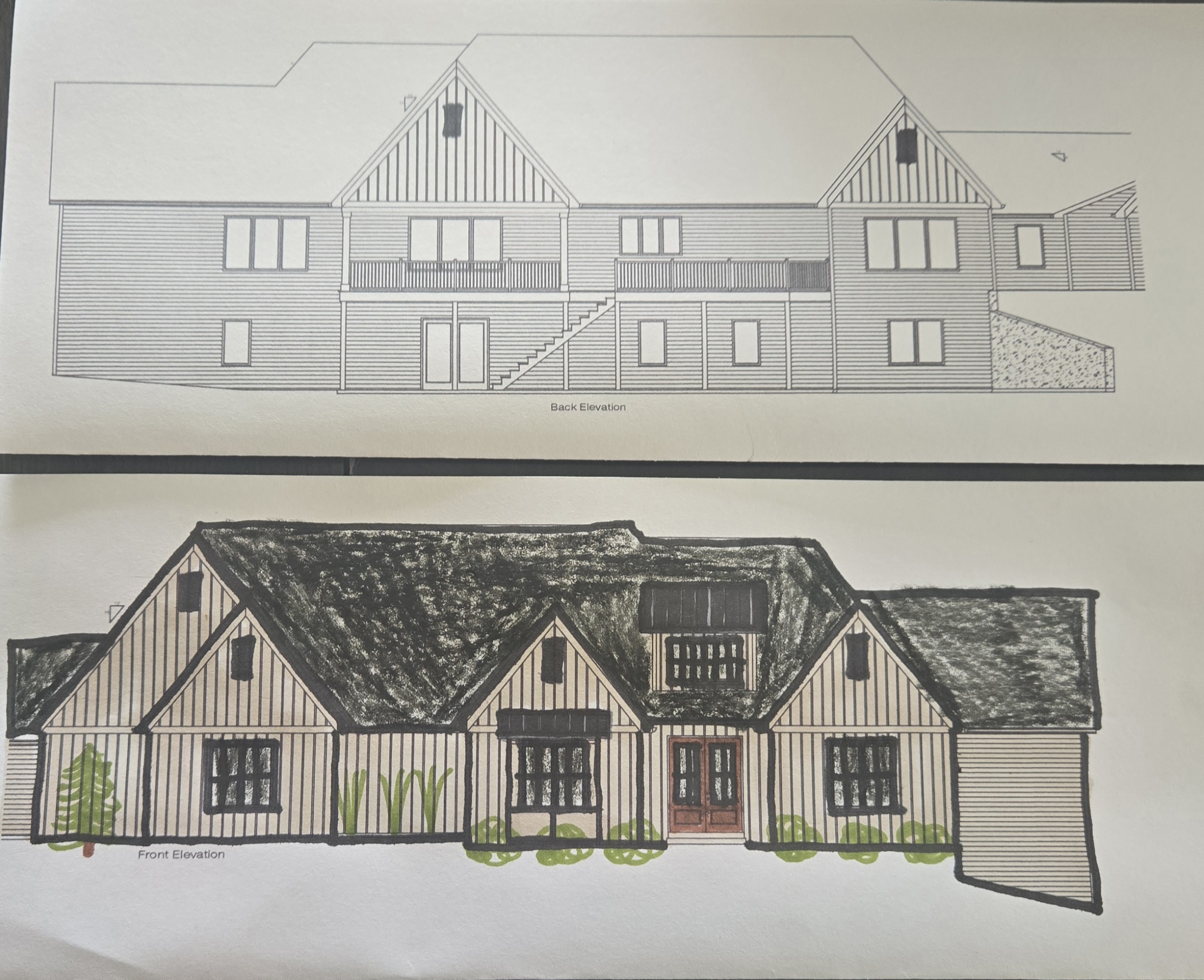 off white board and batton siding with black windows and fascia limestone elements on exterior architecture