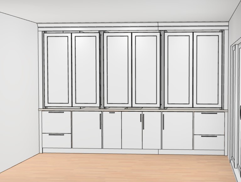 fill in the gaps around the wall cabinet doors with white cabinet material