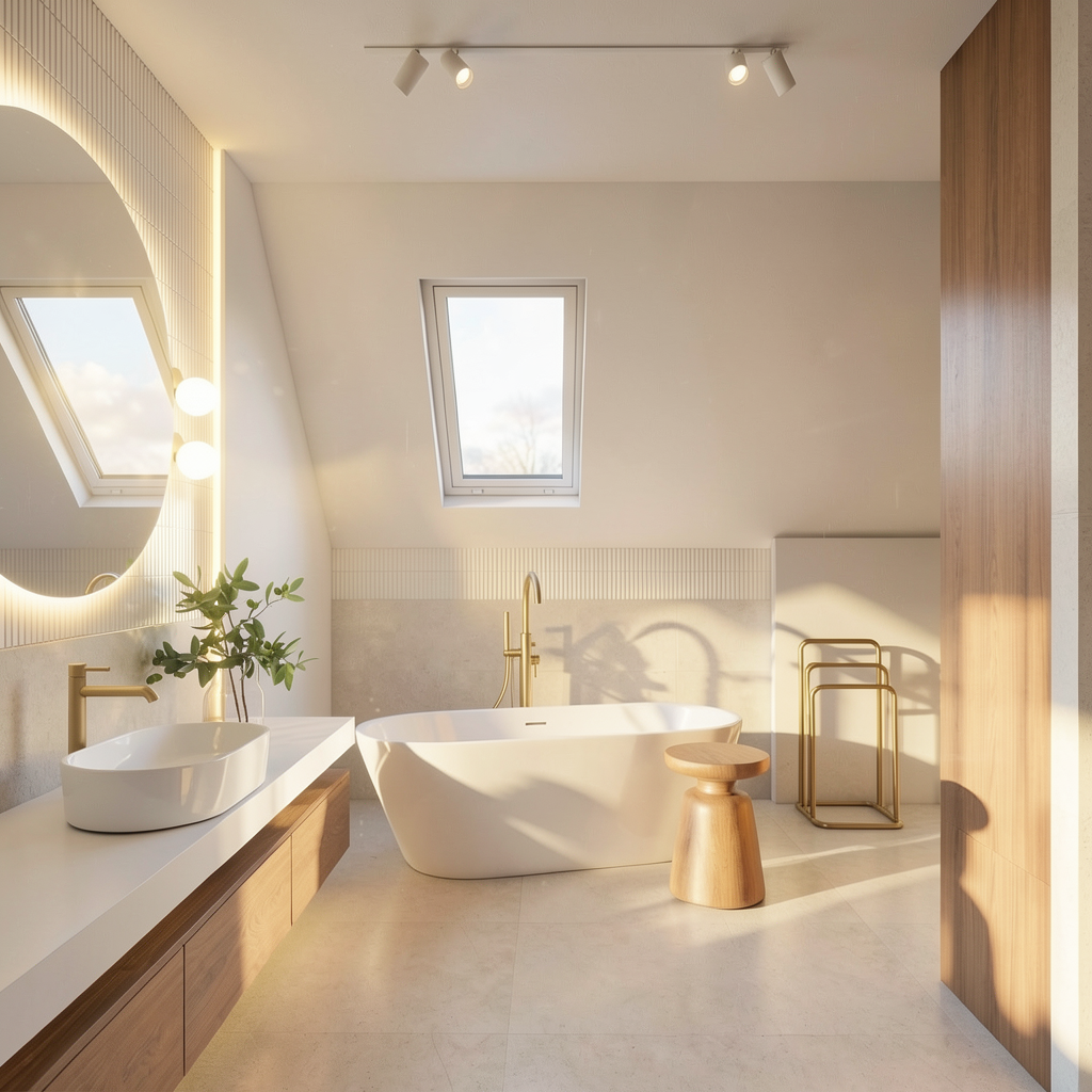 realistic architectural interior render of a modern minimalist space of a house keep the exact original layout proportions furniture placement materials and camera angle no redesign no added or removed elements clean contemporary aesthetic with soft neutral color palette natural daylight entering from the large windows behind the dining area with sheer curtains soft diffused sunlight realistic shadows warm indirect cove ceiling lighting subtle led strip glow balanced exposure real life material textures physically accurate materials pbr textures correct reflections subtle glossiness variation soft ambient occlusion global illumination ray traced lighting realistic camera lens 35mm eye level perspective correct scale and depth clean styling minimal clutter photorealistic interior photography high dynamic range sharp details natural color grading architectural digest style modern minimalist dining and living area with rectangular dining table six wooden dining chairs with light upholstered cushions decorative centerpiece on the table vertical wood slat accent panel marble look wall panel with wall mounted television white tiled floor wooden doors and adjacent living space with sofa behind the dining area the middle door is a wooden double door with the door handle on each door on the middle the picture frame on the image is a tv
