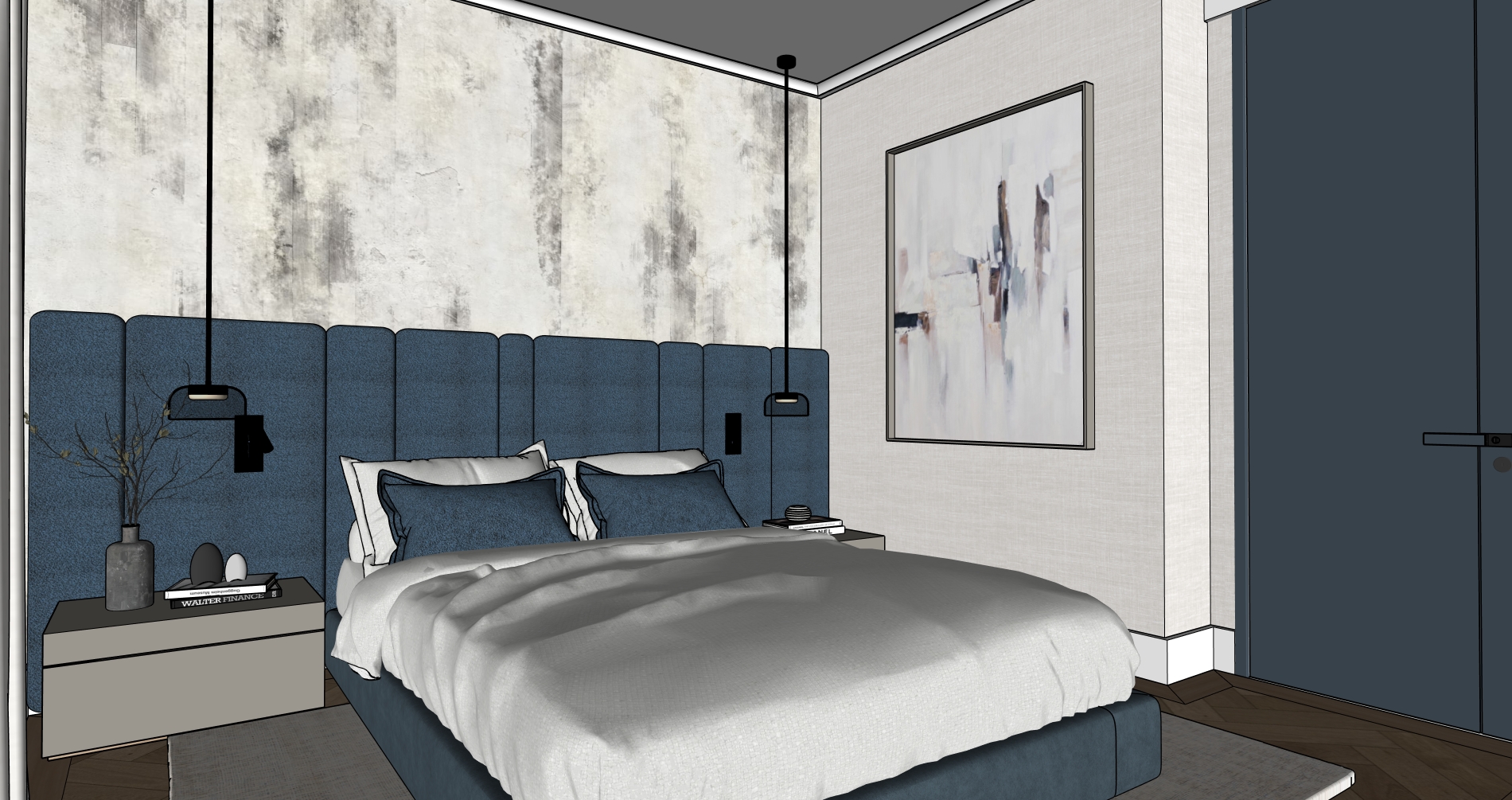 crea una imagen fotorealista a partir de esta de sketchup realza las texturas e iluminacion