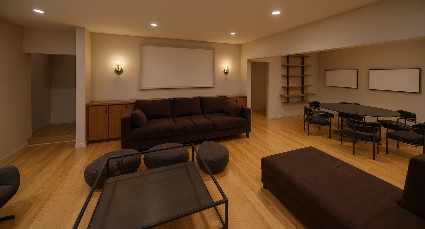 a modern bathroom with a minimalist design featuring a light beige tiled floor and walls the ceiling is made of light wood creating a warm and inviting atmosphere the shower area has a sleek glass partition the wall tiles are a subtle off white with a slight texture a rectangular window with a light wood frame is present at the center allowing natural light to fill the space a modern rectangular white sink is fixed on the right wall contributing to the clean and bright ambiance