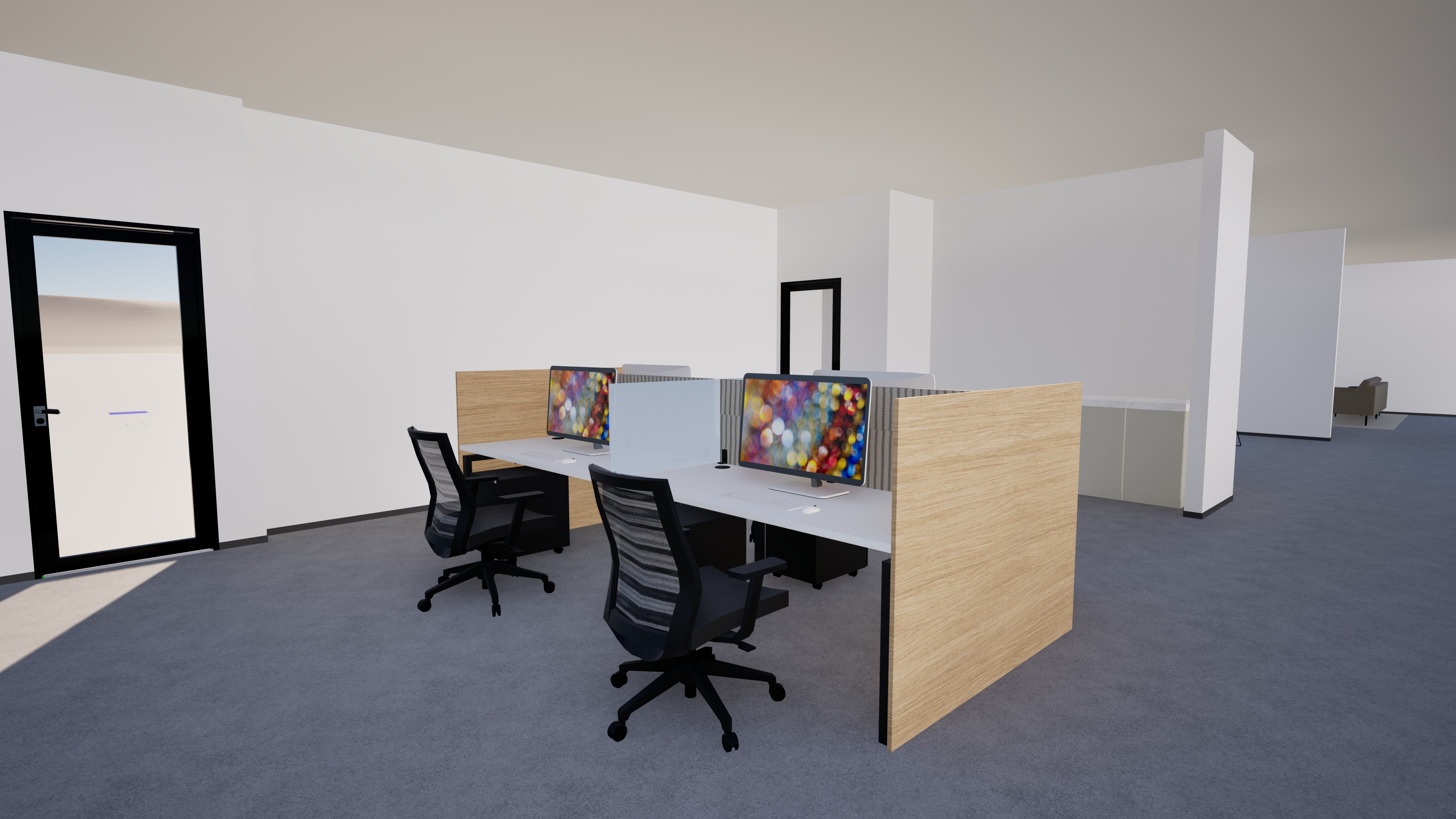 add decor make background tall buildings make more realistic and add people do not change any of the furniture or materials add recessed lighting