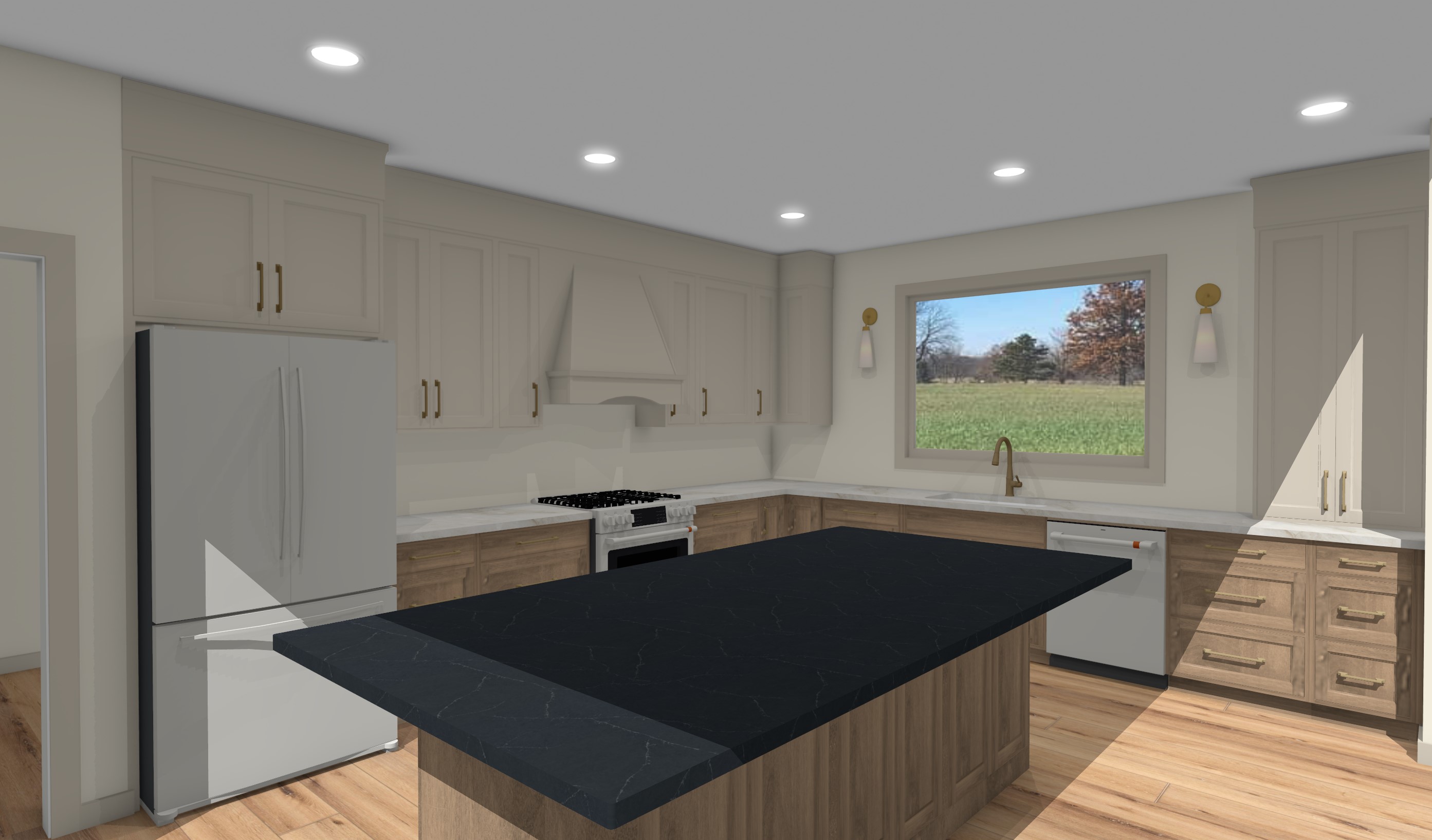 make this image a photograph of a staged kitched