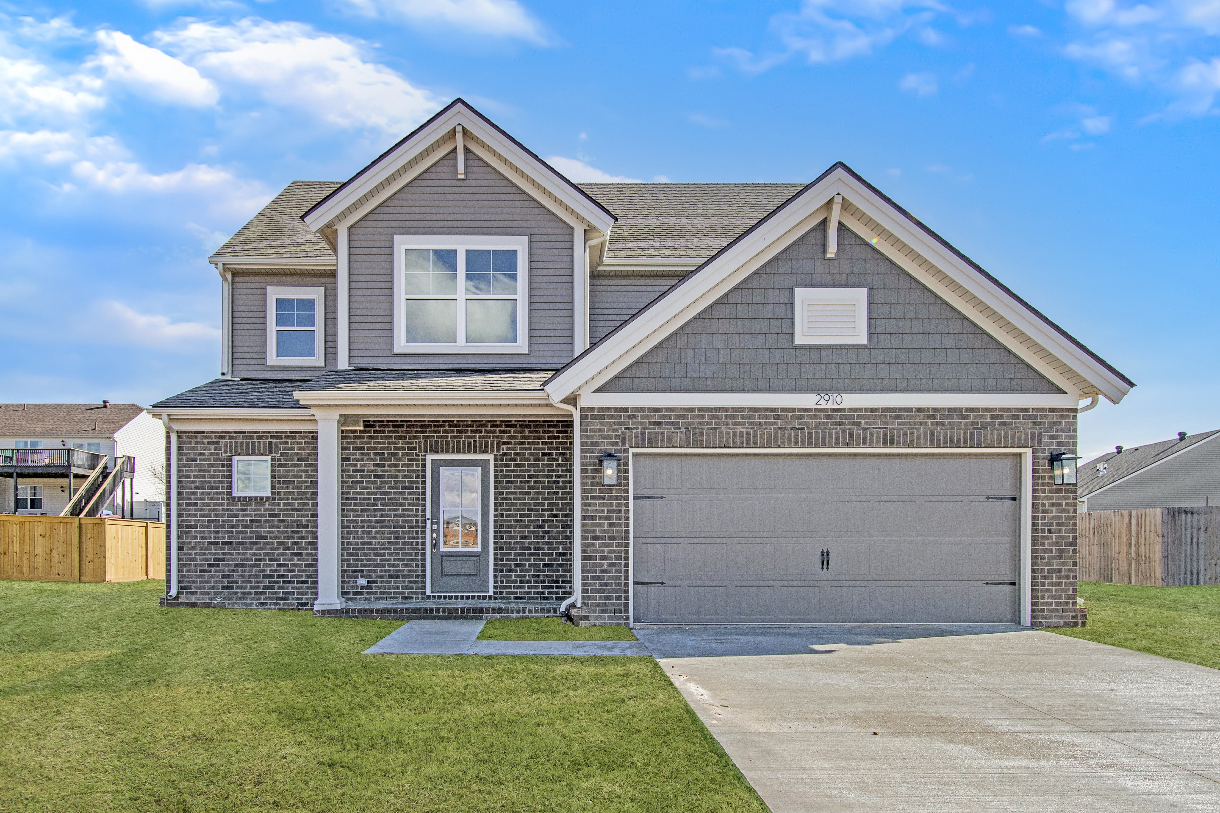 create a christmas scene complete with falling snow and lights adorning the home do not change the landscaping or the architecture of the home