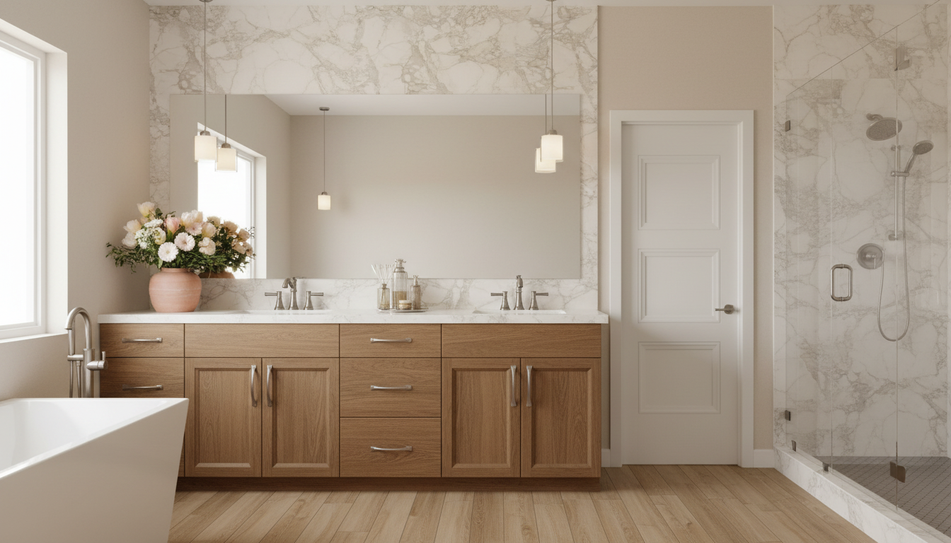 do not change anything but the following remove the bathtub remove the marble from behind the mirror and replace with just wall and mirror