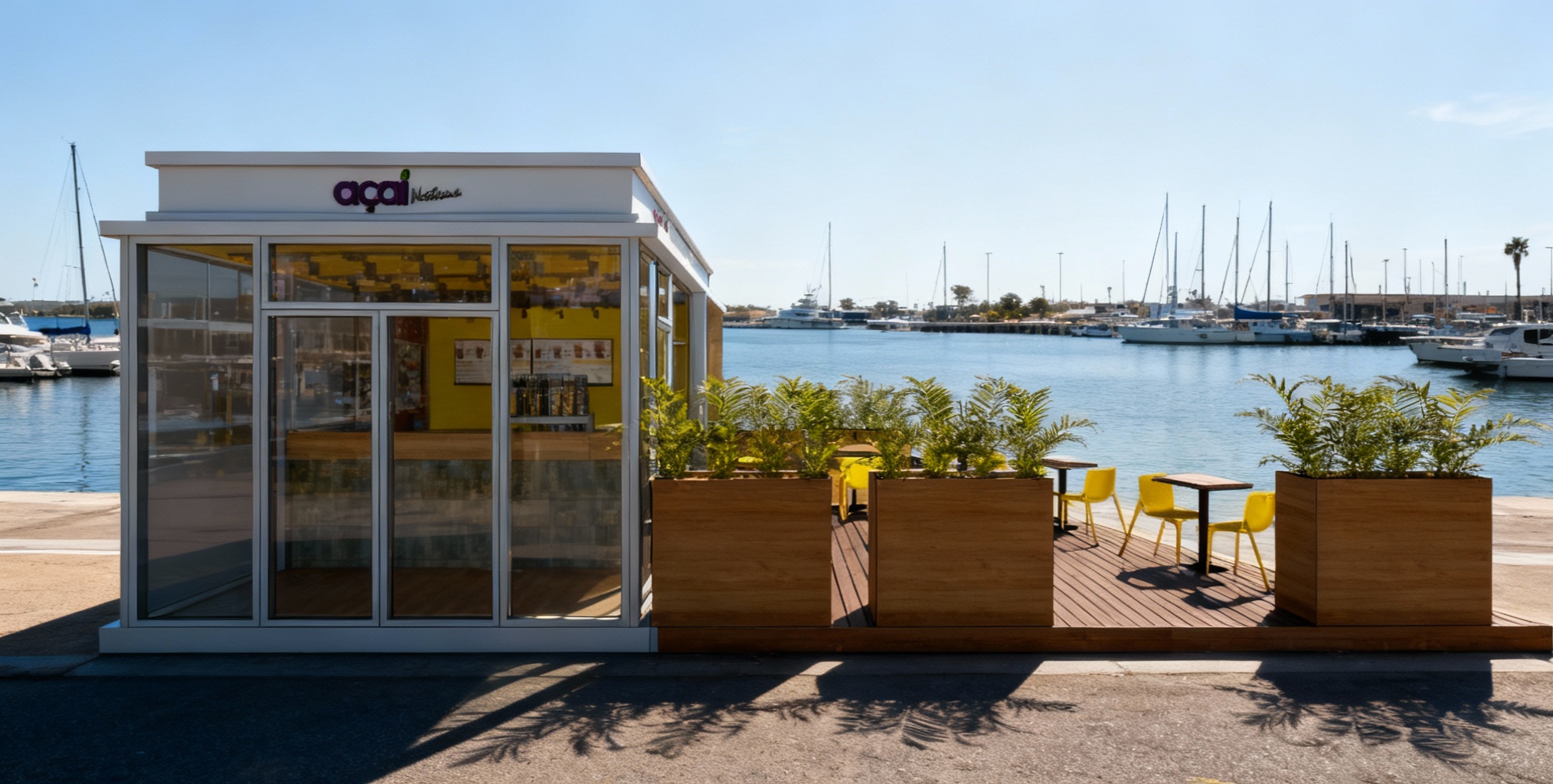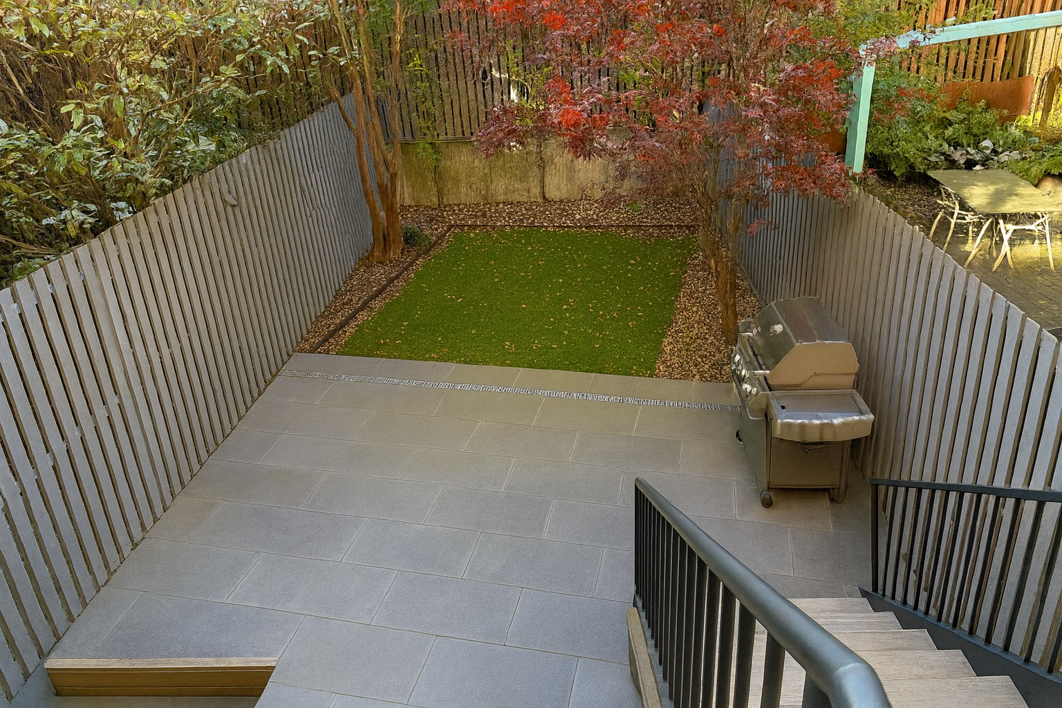where the white circle is there will be a the outdoor basil table with 6 lima dining chairs where the yellow is there will be planters with potted plants where the purple is there will be two pinet side chairs and drink table