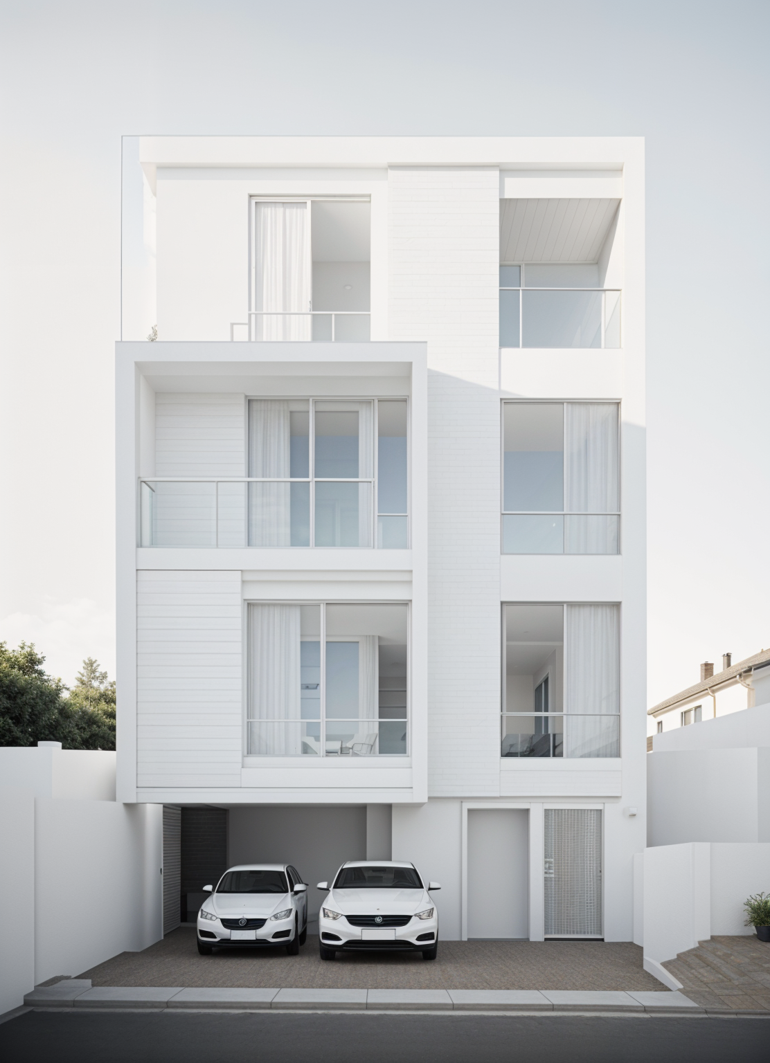 generates a visual enhancement of a warm minimalist foyer the walls are beige with a specific warm tone hsv 23 27 64 decorated with rectangular moldings of the same color integrated to create a subtle and elegant texture the floor is light wood with soft grain and matte finish on the left a curved white cream sofa with contemporary design sits next to a decorative plant with dark green leaves in a gray ceramic planter with a rustic finish on the right a light wood side table with rounded edges holds a lamp with a gray base and white shade while a minimalist rectangular mirror is hung on the wall above it two open doors painted in beige connect to other areas main comes from a white circular ceiling lamp with soft even light complemented by the warm light from the lamp over the table enhance the details textures of materials wall wood textiles and ceramics and colors but without altering the layout or adding new elements keep the style warm natural and realistic architecture