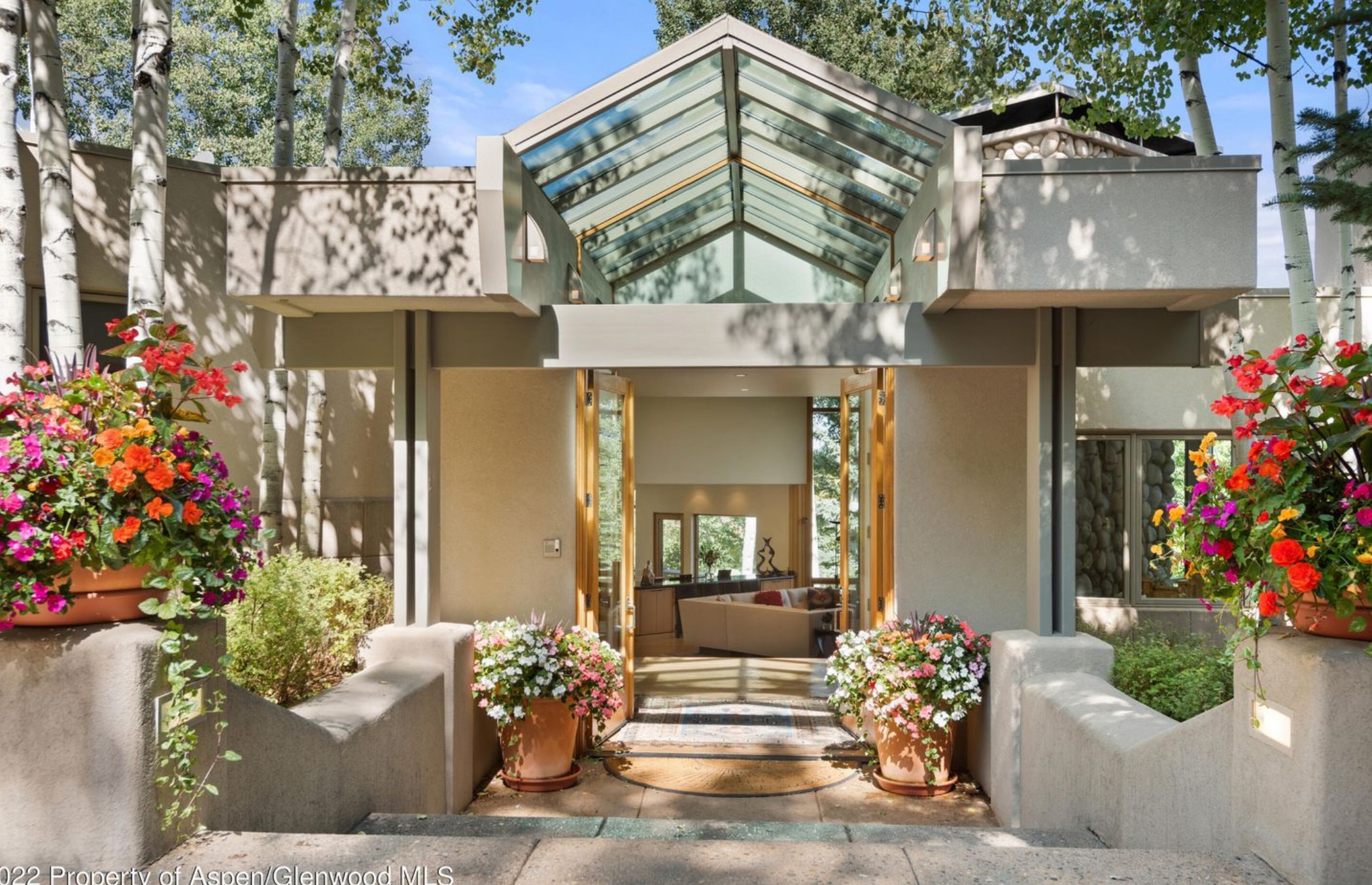 change stucco to rustic grey vertical wood siding and change the roof to a dark black standing seam roof keep sky light make wood trim black stucco at walkway to be concrete