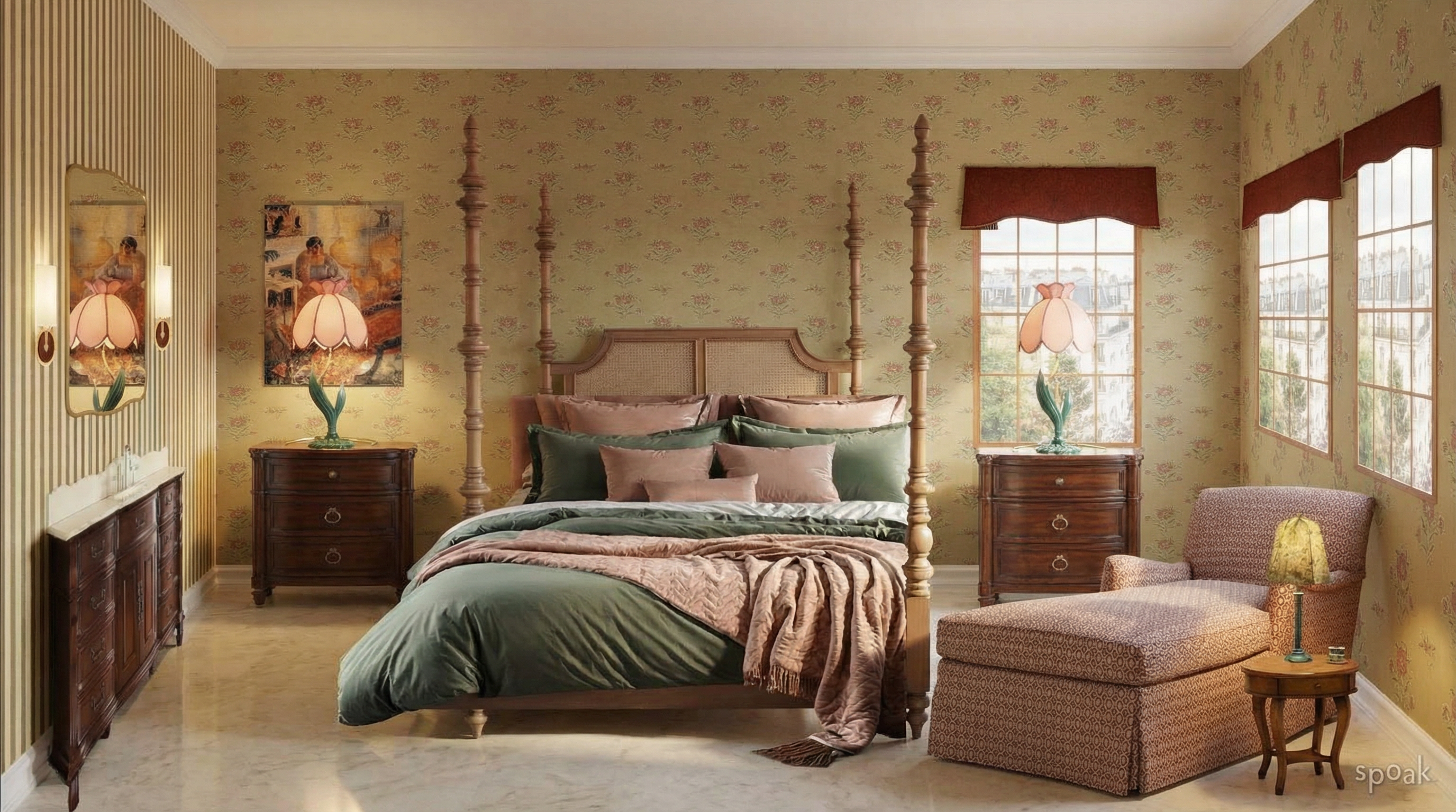 render this bed with neutral bedding