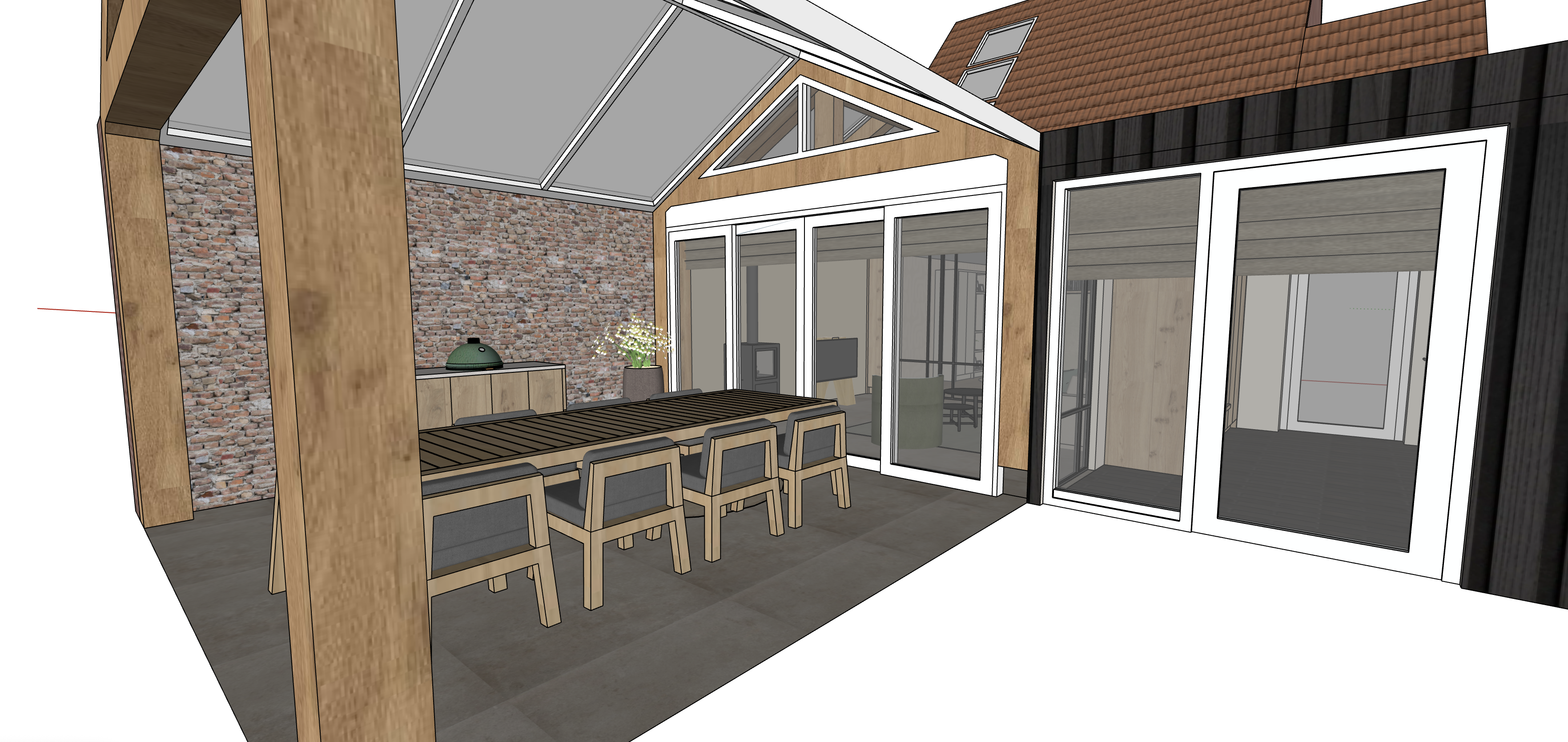 can you make this photorealistic it s bright outside and the sun is shining do you also want to create a garden or put some grass in front of the house and would you like to see the light coming in from the glass ceiling