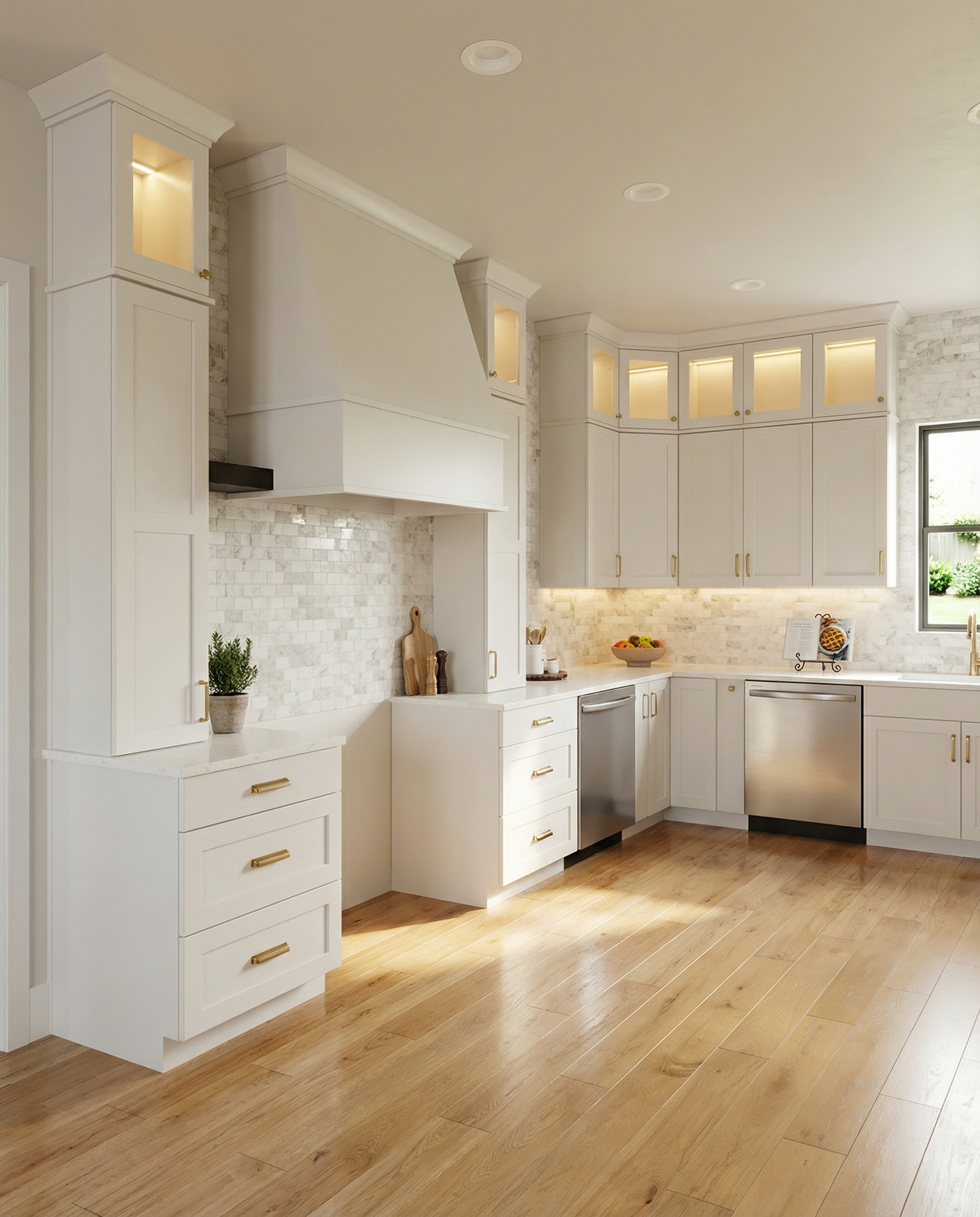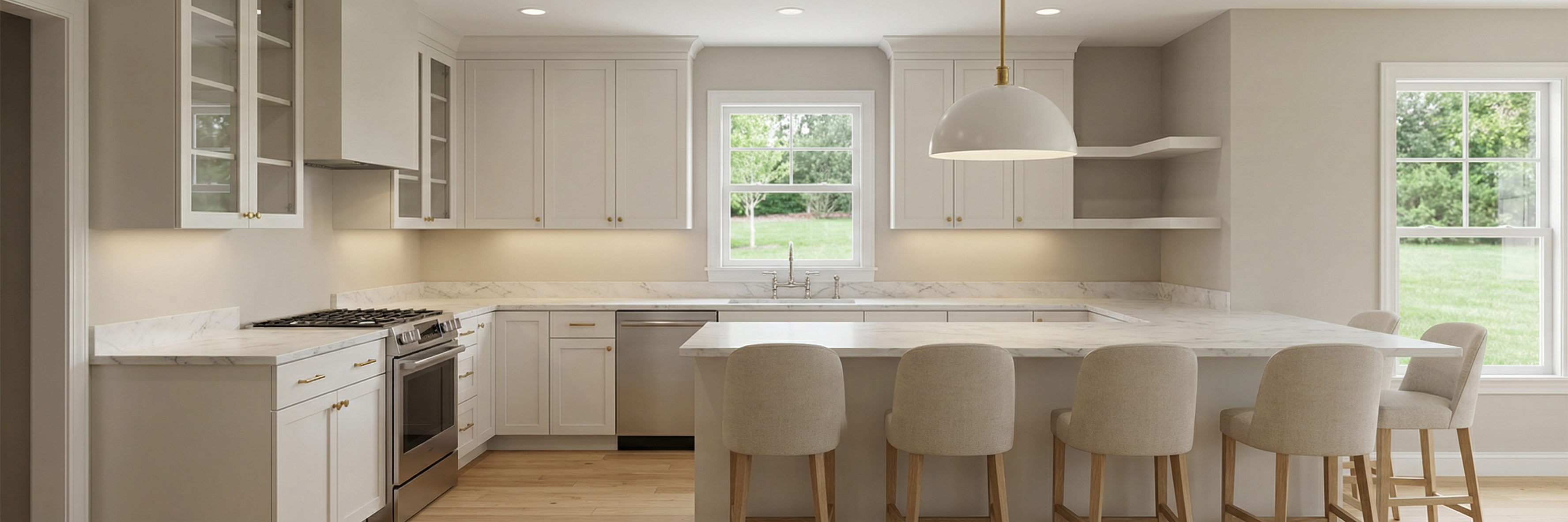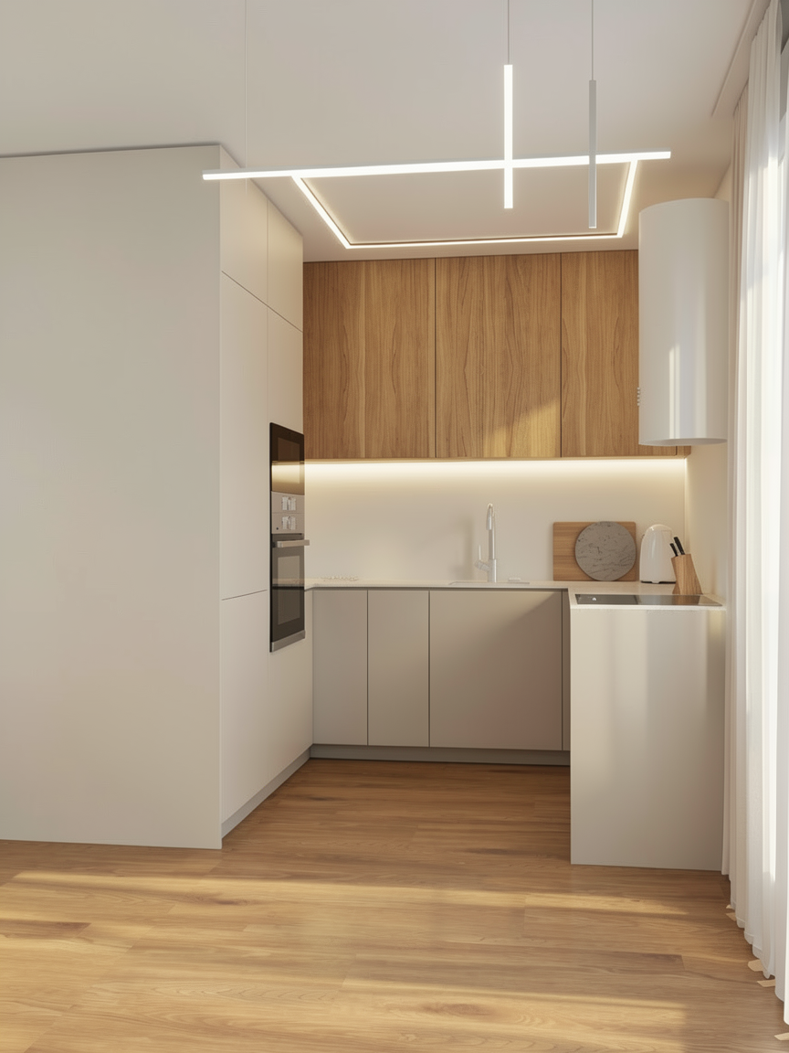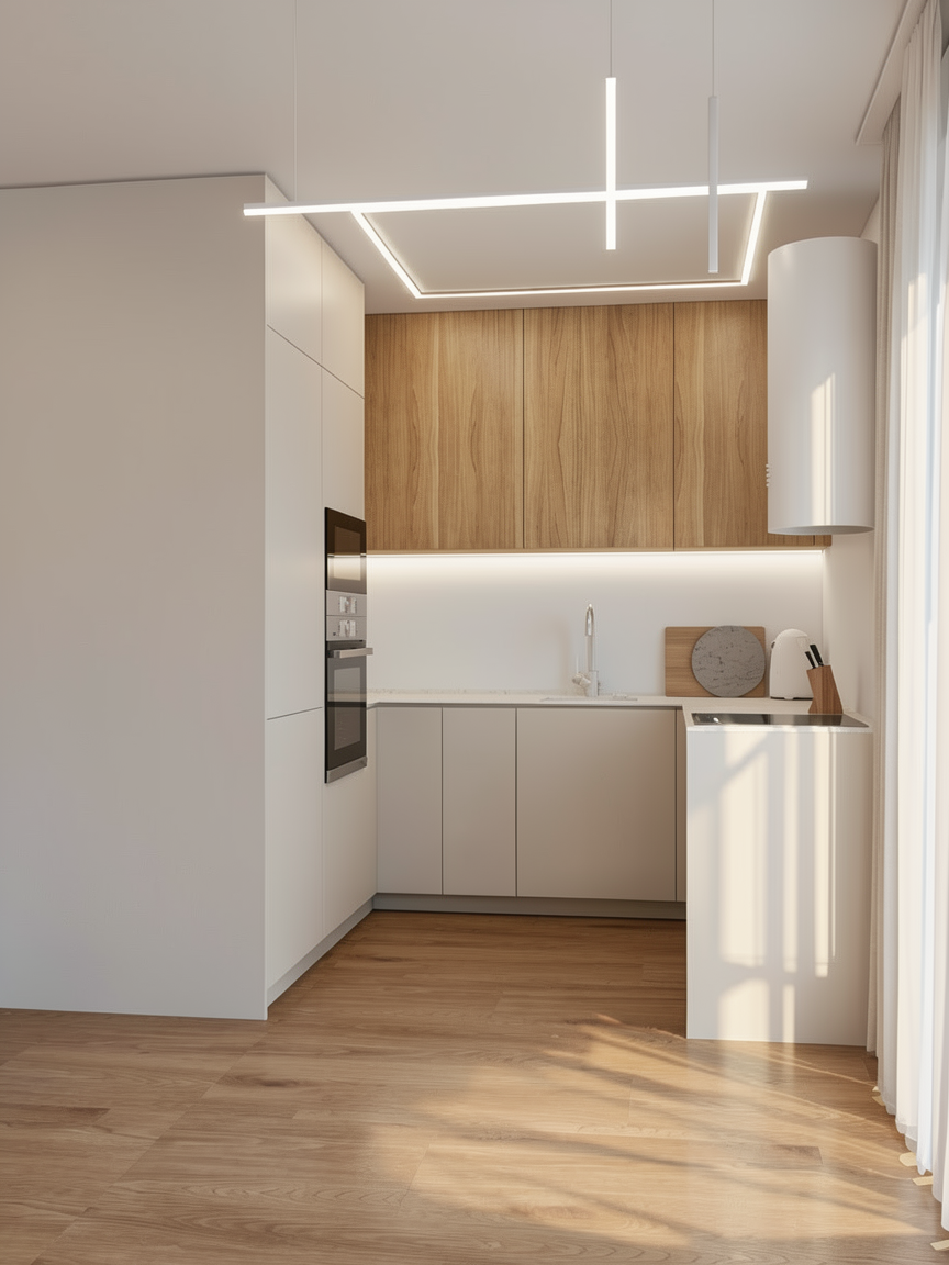 just show the overhead lights on light gray walls