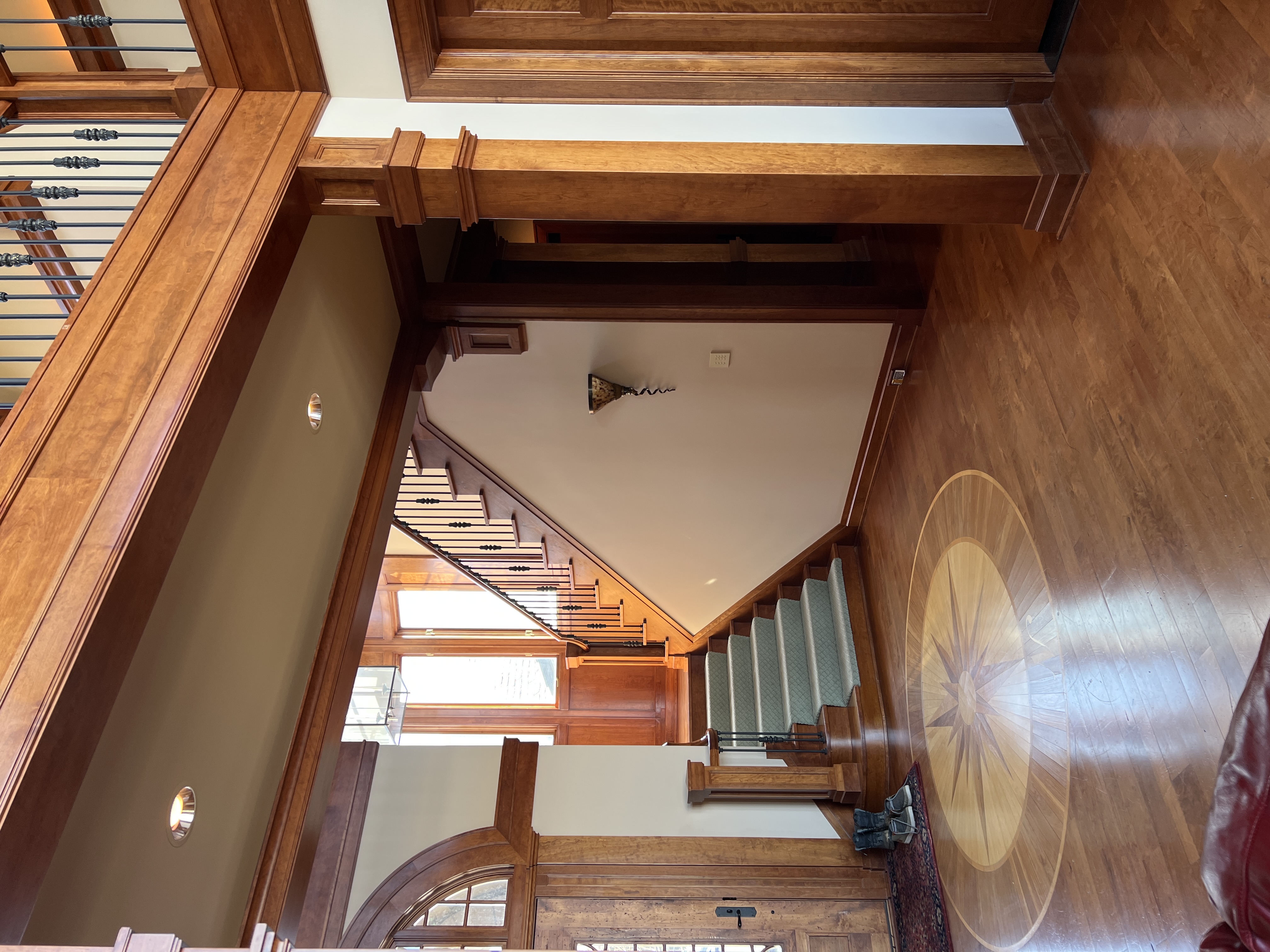modernist interior shot make the stairs floating with glass railing architecture