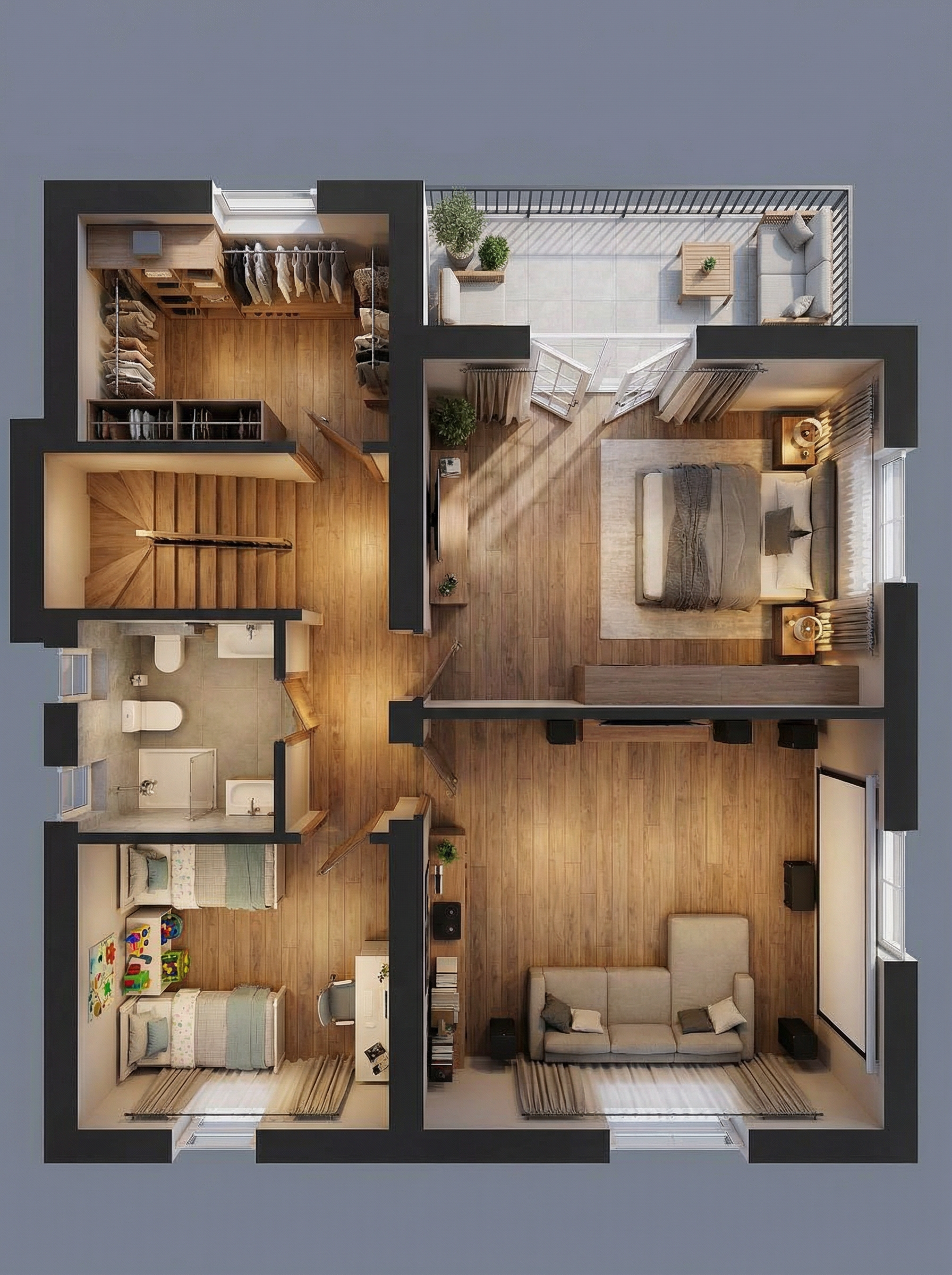 some tables should have a black wood finish that allows you to subtly see the wood grain some tables should be natural maple wood with a semigloss finish some tables should be natural walnut with a very subtle cathedral grain pattern these tables should be mixed together in this composition stick very closely to the original composition of the photo leave the layout of the tables exactly as they are they lighting should be dark and moody not too bright it should have stark shadows i want the background to be moody the background should be a chocolate color