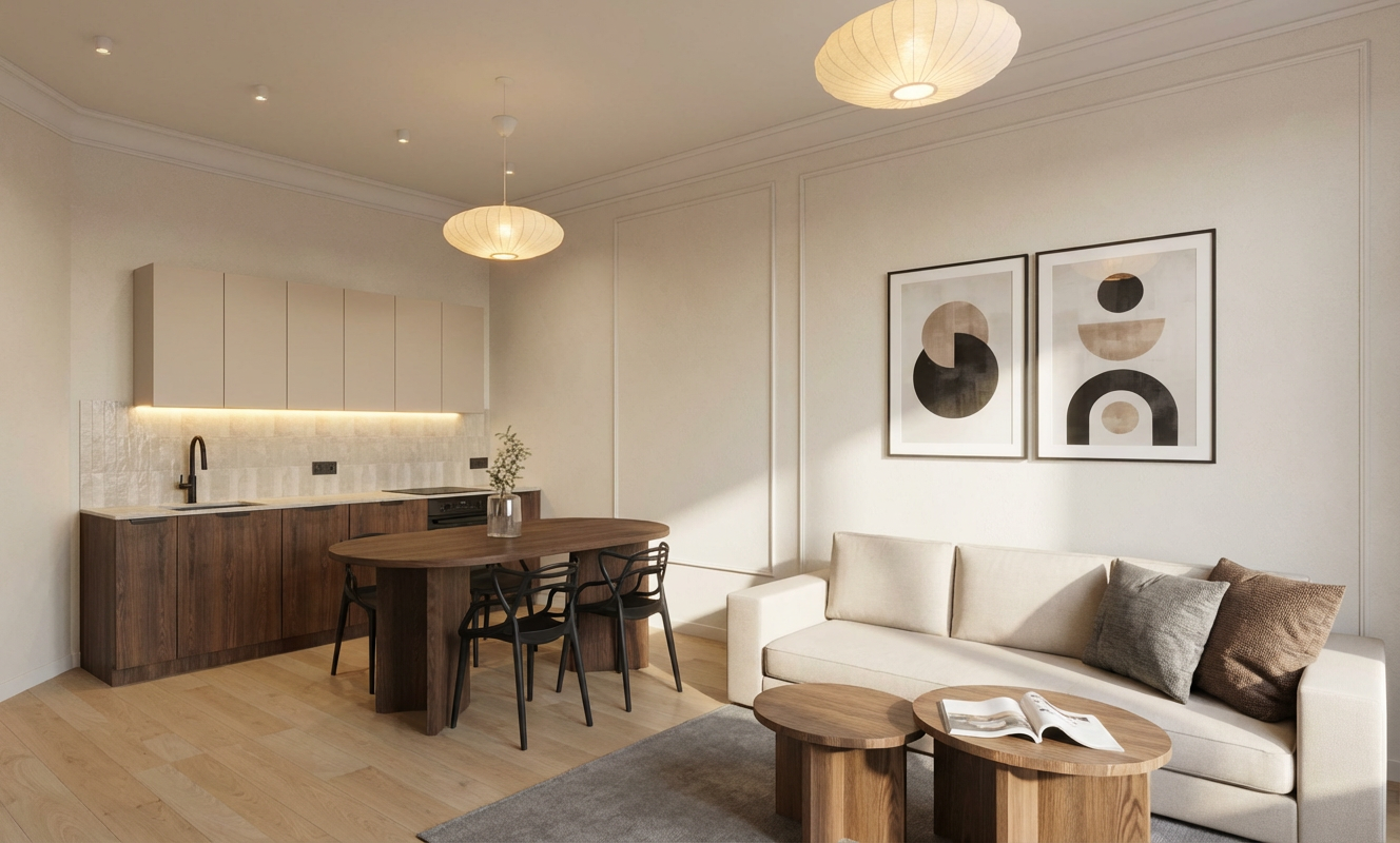 convert this floor plan into a realistic isometric 3d view of a full house show the space from an elevated angle with furniture walls and details visible change walls color to off white plaster walls change floor to bright light marble flooring tiles use brushed brass warm gold fixtures for the bathtub faucet shower hardware hooks and accessories use the same furniture as shows on the plan do not change the orientation of the floorplan