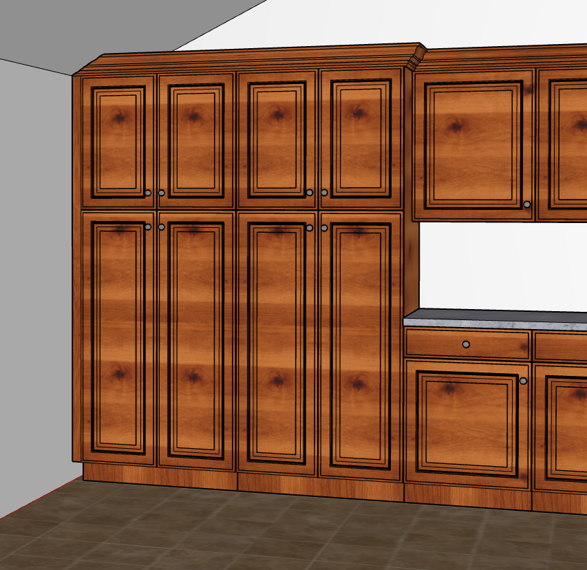 create a realistic rendering of this corner of a kitchen theres lots of natural light coming into this corner the cabinets are made of a stained knotty alder