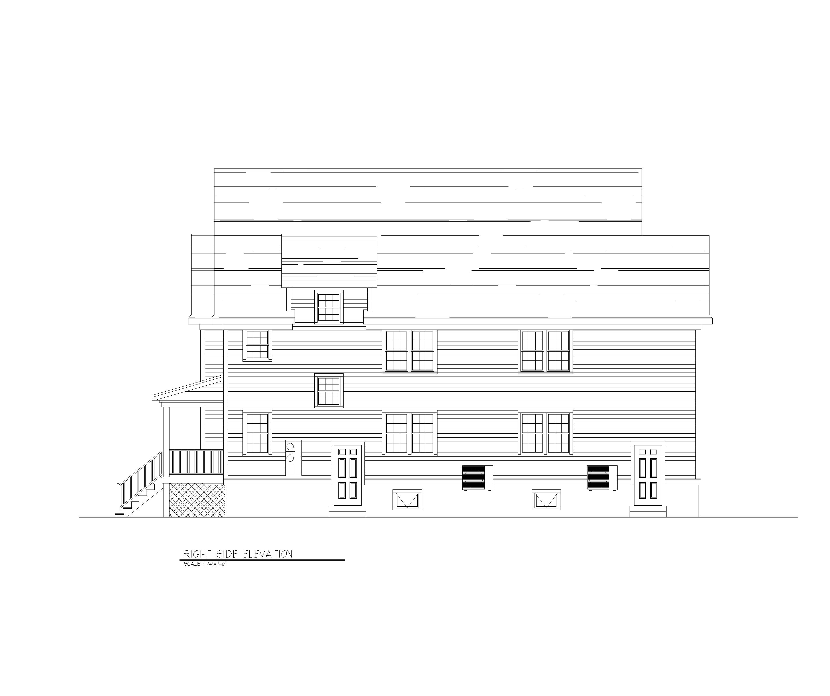 a victorian style house with intricate architectural details the walls are a reddish brown with creamy white trim around the black frame windows and black doors the roof is a slate gray the side doors are black with cream trim there is only one step from the doors to the grass perimeter the two square blocks on the side are minisplit condensors and the rectangular one on the left is the electric meter shutters should be black as well