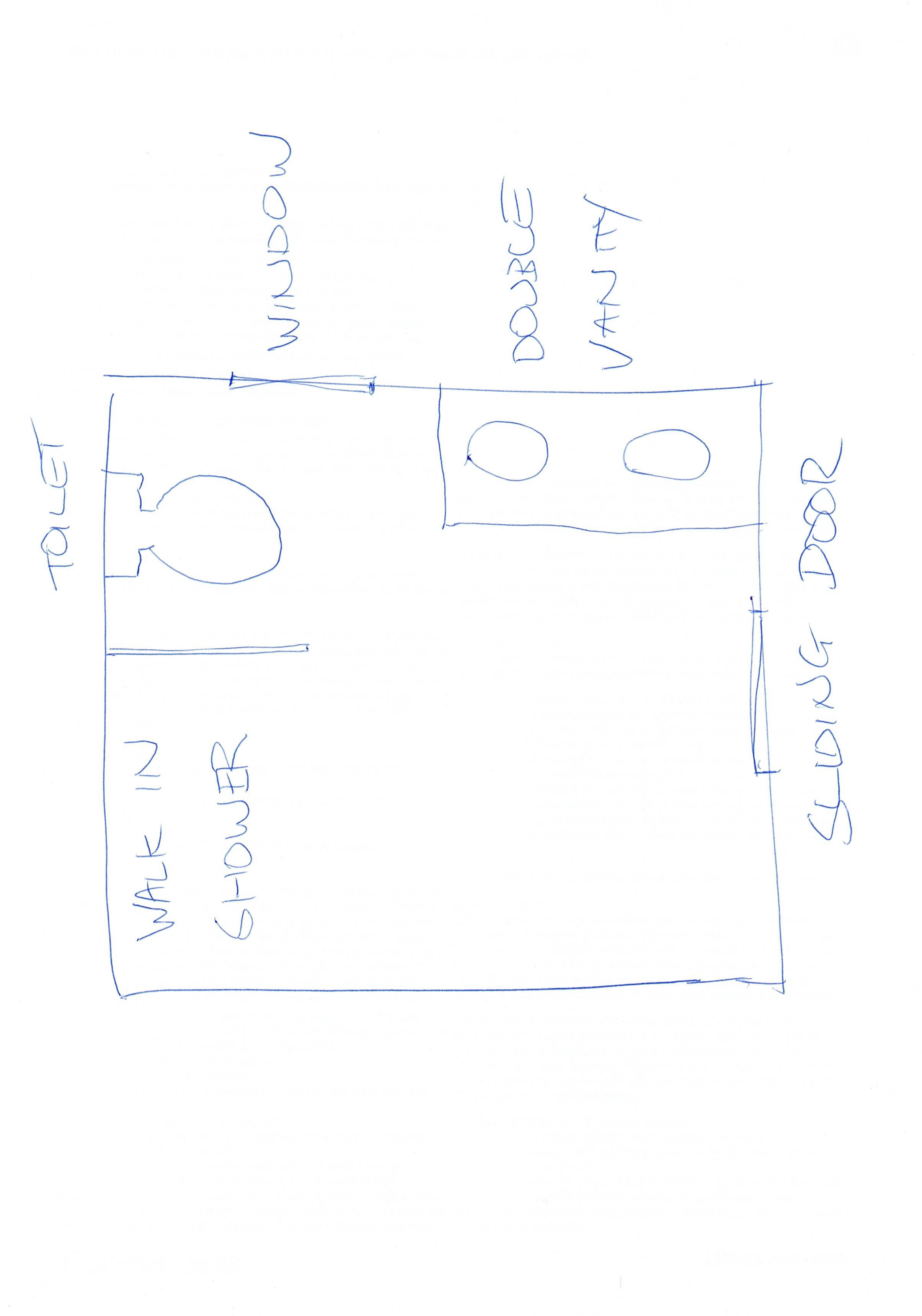 modernist interior shot bathroom plan view with large walk in shower and double basin architecture