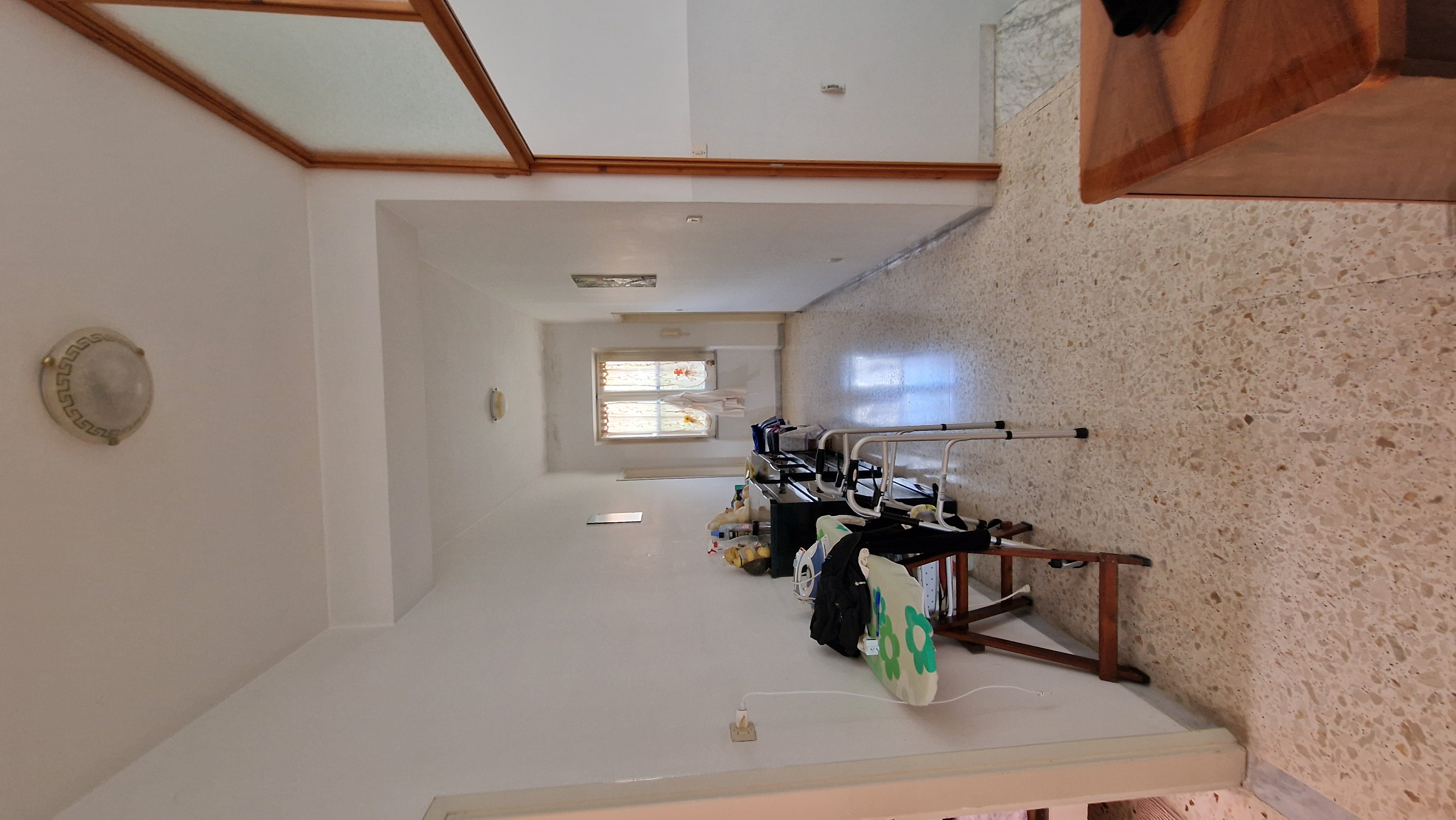 elimina gli elementi sul lato sinistro della foto sostituisci il pavimento con uno fatto a doghe di gres porcellanatop effetto legno chiaro colora l infisso color legno e metti una porta scorrevole a vetro effetto legno rovere sulla destra