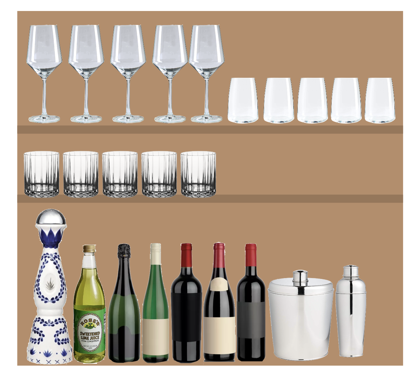 keep design the same add under shelf lighting on the 2 shelves shown have back of bar be a mirror