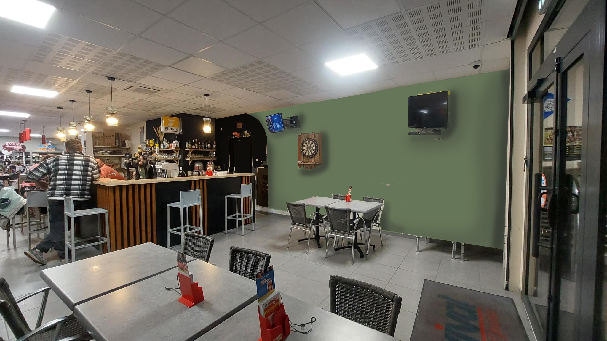 rajouter une plante a droite rajouter des affiches bi res sur le mur mettre le vert du mur plus fonc