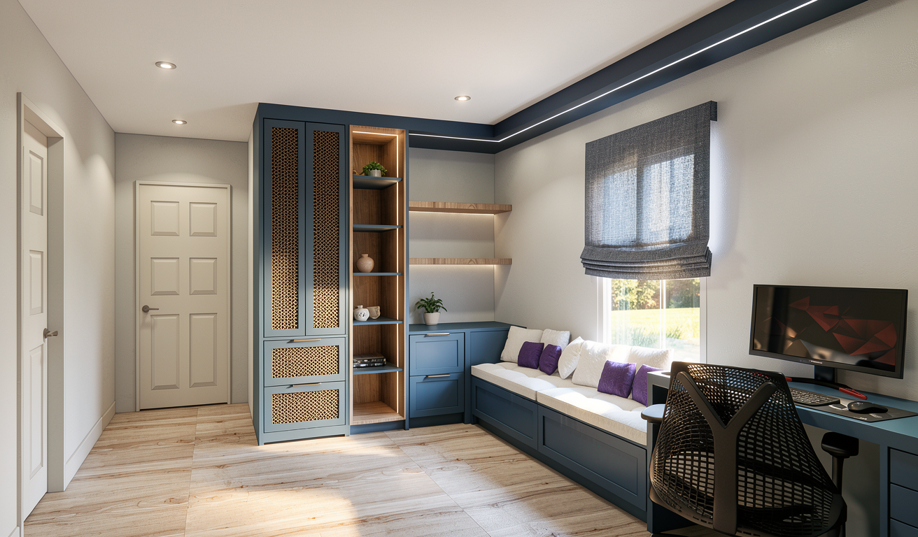 can you make this photorealistic outside it s just light and inside please turn on the lights i d like to keep the materials as shown in the image