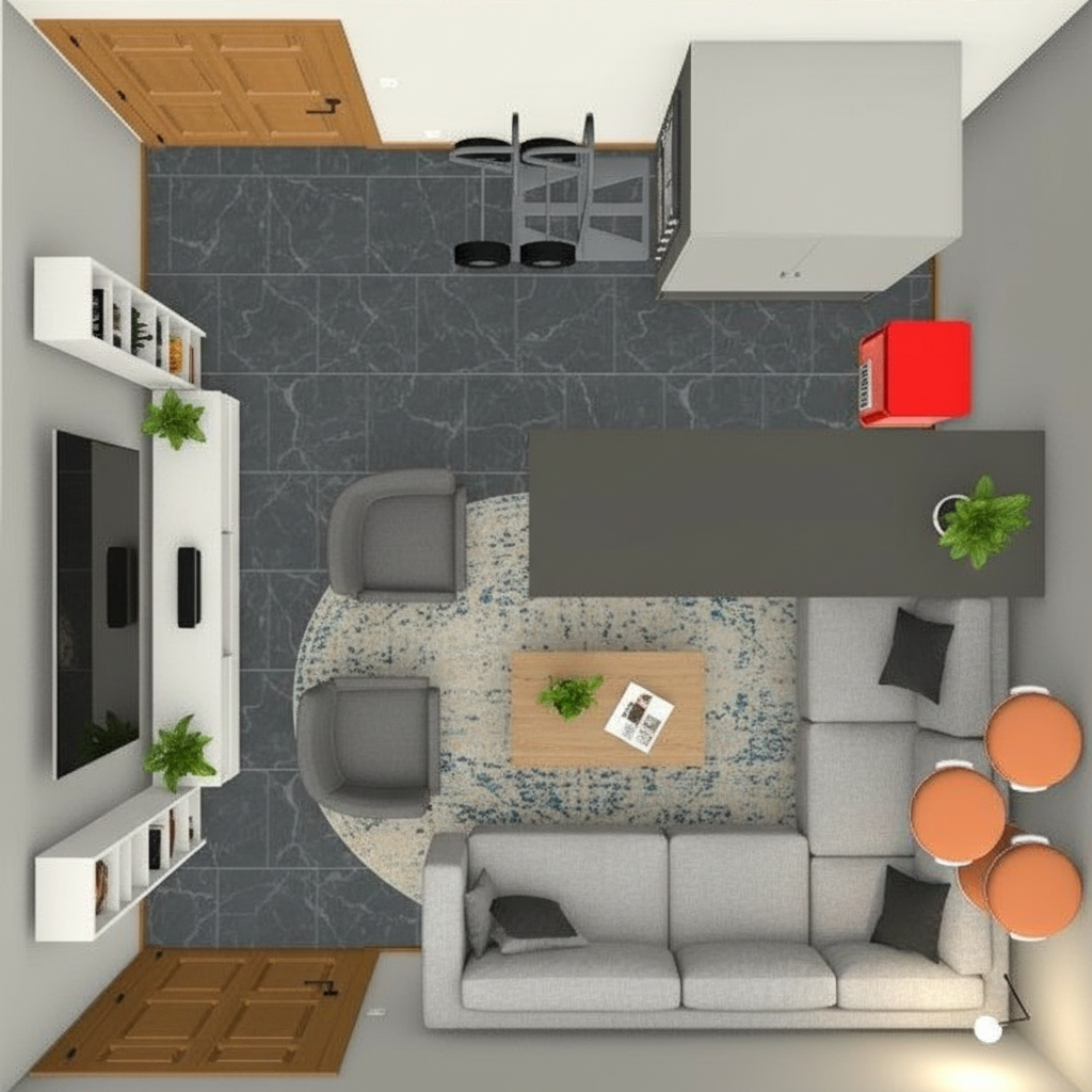 do not change the architecture at all smooth trowel stucco with light sand color light board form concrete building base vertical wood slats horizontal metal panel siding in light beige color slightly darker than stucco dark brown metal railings and horizontal fascia do not change the architecture at all morning sky with thick marine layer fog