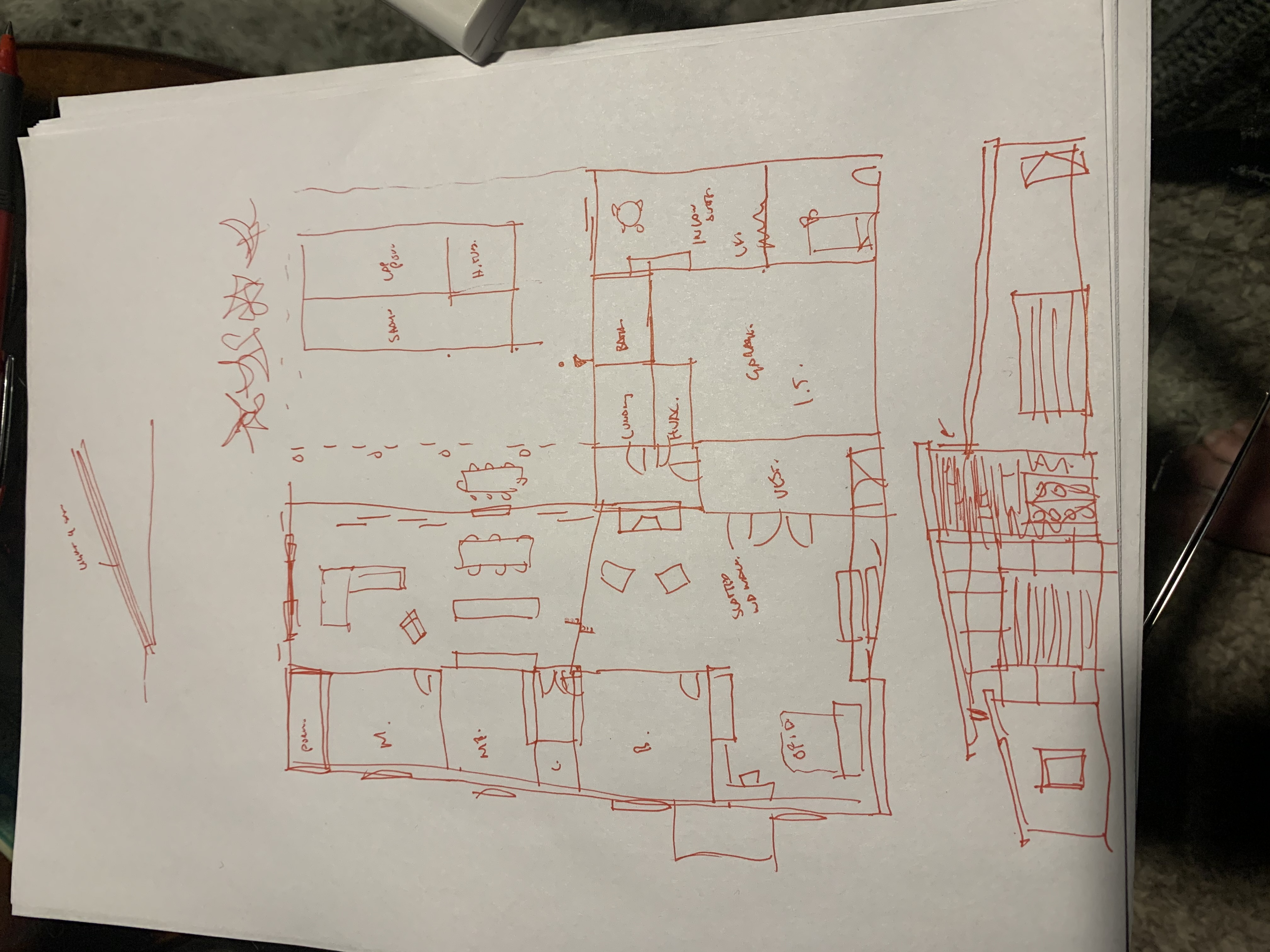 take this floor plan and elevation and keep the layout but tunr the image into an architectural hand scketch with water color