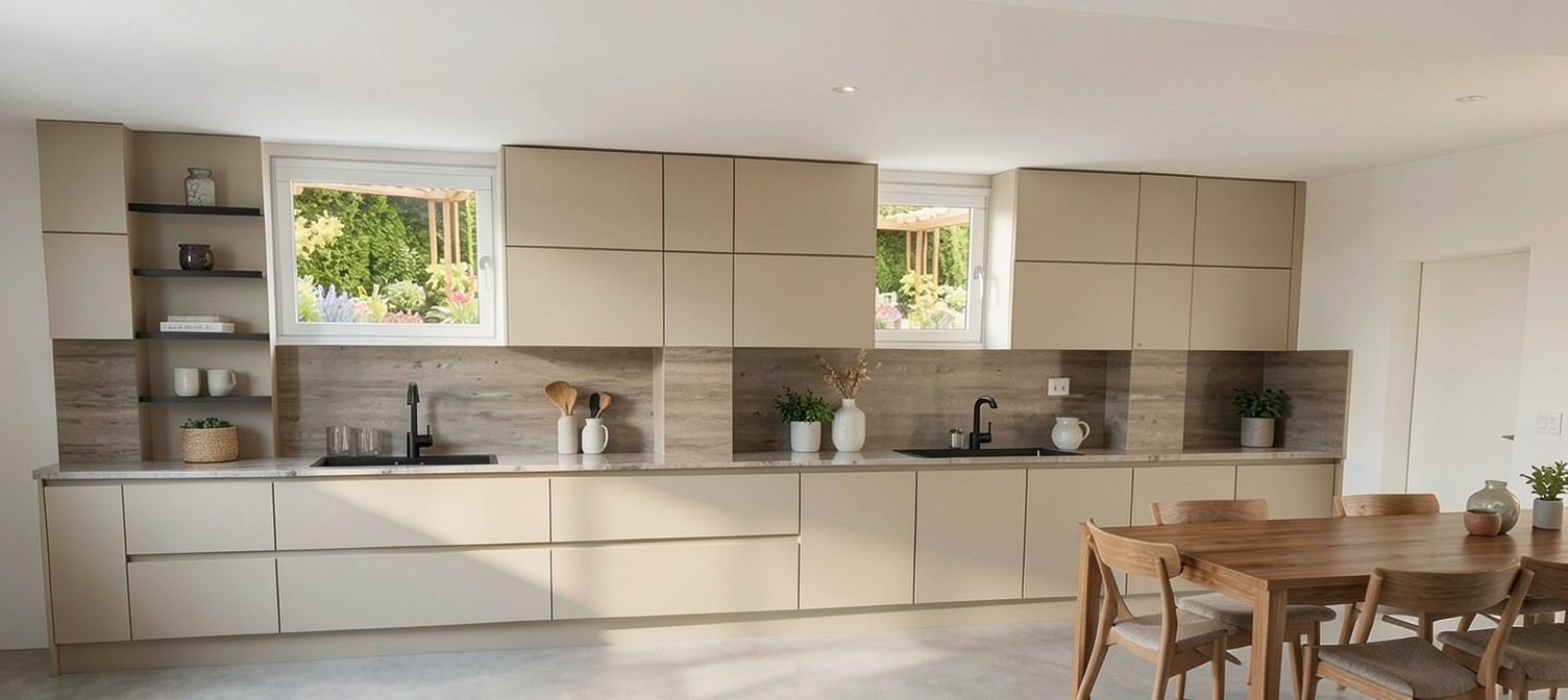 replace the left sink and tap with hob bora xpure 80cm make the back splahes and counters the same color as the table