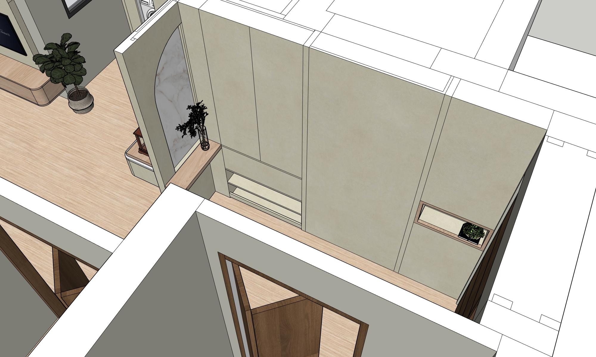 day time white indoor light add cove light inside the curve display and in side the dark wood box top