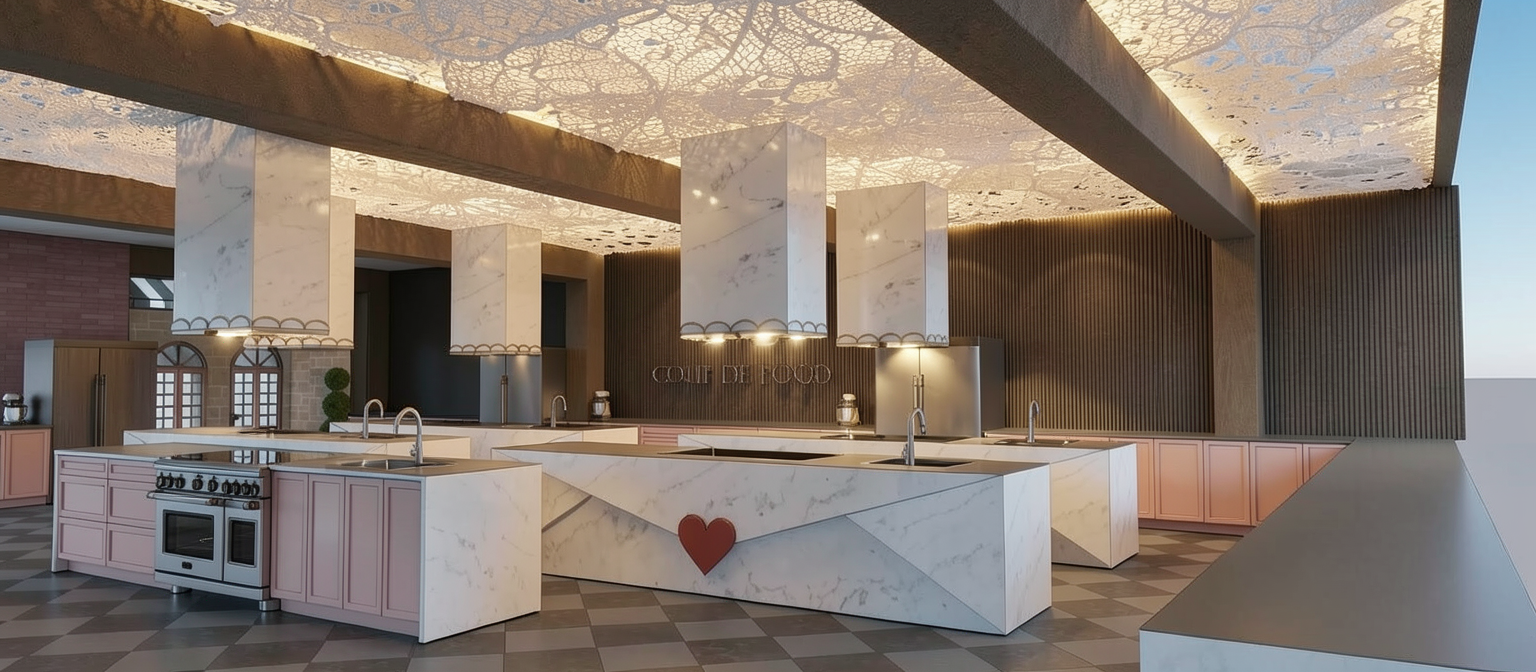 do not change any colors textures or shapes keep everything the same but make the ceiling look like a giant piece of lace with light underneth it great now make the back wall light dusty pinkand keep the same texture the lace ceiling should be straight