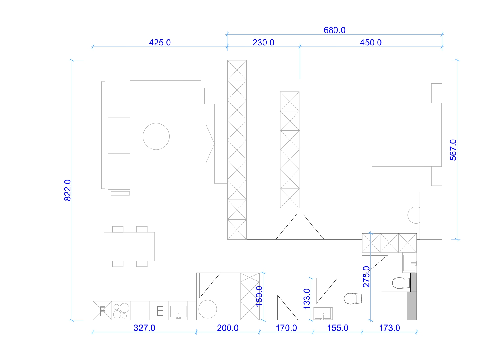 make this 3d modern interior with pastel beige colors the space closer to kitchen is utility