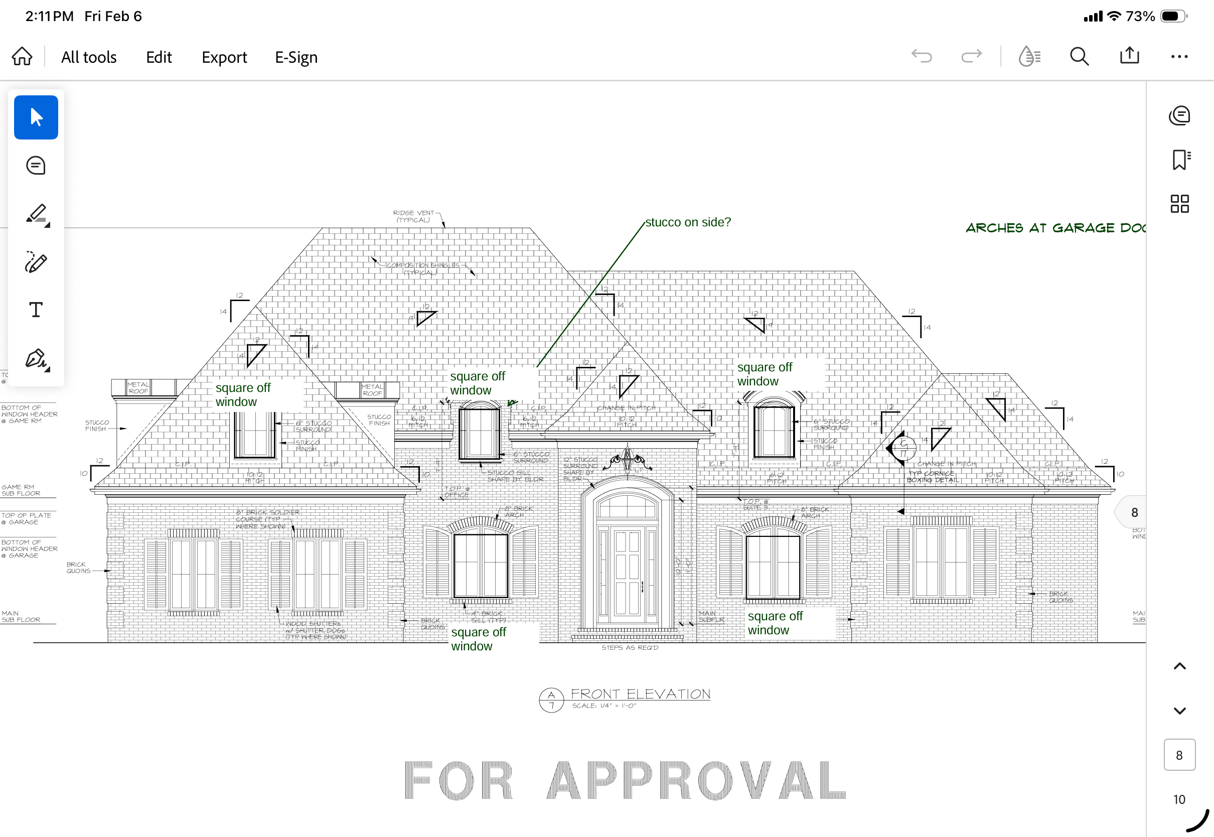 french provincial home white brick black roof windows and eaves courtyard style garage on left entered from the right side omit all written notes and keep all details lush landscape and vivid blue sky
